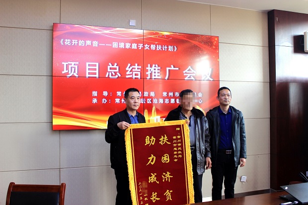 “感谢您,感谢大家对孩子的帮助!”3月28日,在我校沧海志愿者服务中心召开的《花开的声音——困境家庭子女帮扶计划》总结推广会上,作为帮扶对象的代表,小凡(化名)的家长将写有“扶困济贫,助力成长”的鲜艳锦旗送到了常州市慈善总会办公室主任姚广祥先生手中。 《花开的声音——困境家庭子女帮扶计划》是沧海志愿者服务中心负责实施的2020年常州市公益创投项目。在此次项目总结推广会上,据项目负责人汤火强老师介绍,该项目通过调查走访、数据摸排等形式,甄选出最需要帮扶的52位困境家庭子女,从立足于“成人、成材、成功”三个维度,通过“沧海成长屋”、“彩虹俱乐部”、“爱多一度社会活动营”、“个案辅导”、“小组帮扶”、“微心愿生活帮”等形式进行全方位帮扶,助力服务他们的终身发展。 接力大爱,温暖如春。在项目的影响与感召下,该中心的的一些爱心共建单位也纷纷融入到爱的洪流。常州市江正人力资源有限公司、常州市八月文化传媒有限公司等单位从物力、财力、人力等多方面给予帮扶对象大力的帮助与支持。