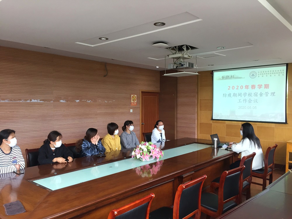 为积极应对新型冠状病毒疫情防控,有效总结复学以来疫情防控校园安保工作的经验教训,确保学生住宿和进出校门管理安全万无一失,5月5日下午,我校在行政楼二楼会议室分批召开了召开疫情防控保安、宿管员培训工作会议,学生工作处(保卫处)李志斌处长、姜玉梅副处长、全体保安、宿管员全程参与了活动。