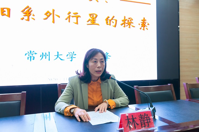 览九天星月,做天文达人——我校鸿学讲堂成功开讲 11月18日18:30,我校鸿学讲堂在校报告厅成功开讲。本次讲堂特邀常州大学李峰教授做了《外星人在召唤——太阳系外行星的探索》的专题讲座,我校经贸管理系200余名师生聆听了本次讲座,讲座由林静书记主持。 林书记首先对李教授表达了欢迎,接着她对到现场聆听同学们提了会场要求:她希望同学们要践行八礼四仪,做文明听众,认真听讲。