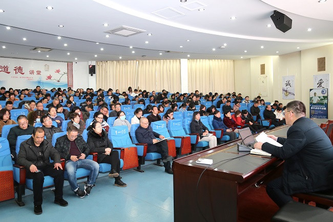 卞校长首先带领教职员工一起学习了党的十九届五中全会的重大成果和“十四五” 规划内容,深刻指出党的十九届五中全会科学擘画了中国未来5年以及15年的发展新蓝图,全体教职员工要充分认识党的十九届五中全会召开的重大历史意义和现实意义;随后卞校长依据《国民经济和社会发展“十四五”规划和2035年远景目标的建议》中阐述的职业教育的相关内容,结合我校发展的现状,与教职员工一起分享了他的学习体会和对我校高质量发展的若干思考。他深深体会到:在激发人才创新活力上,职业学校要加强创新型、应用型、技能型人才培养;要实施知识更新工程;要实施技能提升行动;要壮大高水平工程师和高技能人才队伍。在强化就业优先政策上,要高质量育人;要增强职业技术教育适应性;要坚持产教融合、校企合作;要办中国特色的学徒制。最后他强调:我校作为省领航学校,质量和特色必将是学校发展的关键,我校要乘势而上,善于抓住机遇和挑战,提前做好应对准备,在下一步工作中把学习贯彻五中全会精神与开展主题教育、教育教学、管理服务、品牌创建、特色育人等工作结合起来,坚持学用结合、以学促干,进一步深化产教融合、校企合作,完善全员育人、 全程育人、全方位育人体系,持续提高办学水平和育人质量,努力培养出更多高素质、高技能的复合型人才,全力打造人民满意的职业教育。