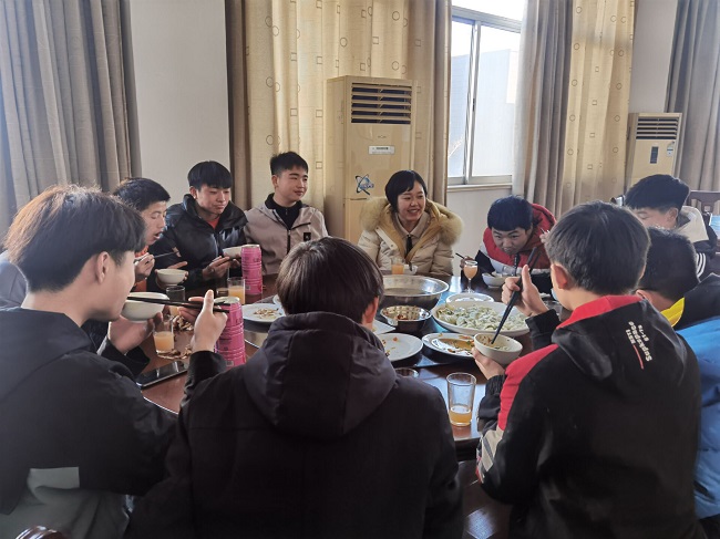 中专人·苏陕情·家乡味 ——我校举办宁陕学生“庆元旦、迎新年”联欢活动 新年的脚步悄然而至,岁月的年轮又圆了一圈美好的回忆。伴着冬日的浪漫气息,带着满心的欢喜,2021年1月1日上午,学校领导、老师及沧海志愿者服务中心师生和宁陕籍学生一同庆祝元旦佳节。宁陕县组织部挂职金坛干部徐璐主任、学校校长卞勇平、党总支书记林静及学工处、团委、智能制造系等部门负责人全程参加了活动。 在“苏陕一家亲,新年心语座谈会”上,林静书记代表学校向同学们表达新年的问候,她指出同学们遇到是一个美好的时代,国家正在蓬勃发展,社会建设需要各种人才,江苏和陕西对口帮扶协作,学习环境和生活条件正在逐步改善,我们要珍惜利用好这些机会,学好专业技术技能,改变自身,造福家乡。徐露主任也给同学们带来了新年礼物,同时她勉励同学们要懂得感恩、珍惜学习机会、明确奋斗目标,以不负青春的姿态迎接挑战,创造美好未来。 座谈会结束后,师生们移步到食堂,共同包起了饺子,大家竞相动手,师生各展其艺,其乐融融。 中午,同学们品尝着自己亲手包的饺子,享受着自己动手的成果,感受着千里之外家的温馨。同学们纷纷表示:“虽然不能在家和父母亲朋共度佳节,但通过活动切实感受到了金坛中专大家庭的温暖。” 热乎的饺子,温暖的心,此次活动既是一次食育实践、劳动实践活动,也是对传统文化的传承和发扬,更是提供一个平台,促进了师生间的感情交流,增进了同学们的沟通与交流。(撰稿:李志斌)
