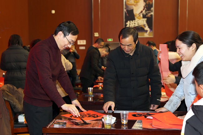 本次活动以春联为载体,为广大师生题写春联,送去祝福和吉祥。活动现场,翰墨飘香,多位书法名家铺展红幅,笔锋婉转,行云流水,妙句成双,隶书、行书、草书,形式多种多样,引得旁观者连连赞叹。