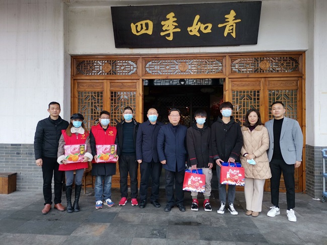 新春慰问寄真情,浓浓关爱暖人心。2021年2月6日,学校党总支书记林静、副校长汤英俊、学工处处长李志斌、团委书记徐森、班主任曹雨平、沧海志愿社汤火强老师等一行走访慰问了这两位同学,大家围坐在一起,仔细询问了同学们的生活、工作情况,林书记叮嘱他们要做好个人防护,确保假期平安,节日充实,生活快乐,汤校长则嘱咐同学们向家长拜年、报平安,祝愿大家度过一个祥和温馨的春节假期。随后,学校领导又和企业负责人进行了沟通交流、嘱托企业关心好他们的工作和生活。临别之际,大家向同学们赠送春节慰问品。 两位同学倍感温馨,真切感受到学校是一个幸福大家庭、金坛就是他们的家乡,感谢学校、老师送来的暖心慰问,将把学校领导、老师的关心关爱转化为工作学习的强大动力。(撰稿:李志斌)