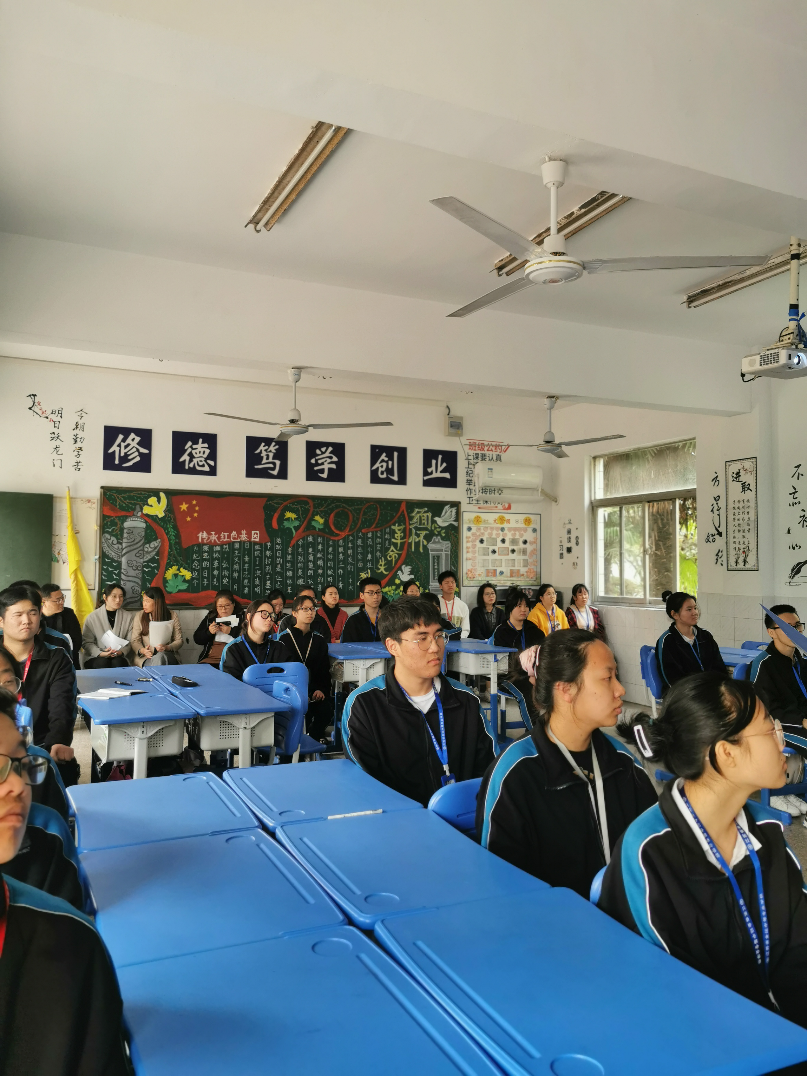 “文明礼仪,不仅反映了个人素质和教养,也体现了个人道德和社会公德,更展示出一个城市的面貌和一个国家的形象。”,“文明是一种习惯,与我们日常生活中做的事一样,文明是一种修养,它透露出我们的谦逊、儒雅、知识,文明是一种美德,它像柔风细雨,滋润着每一个人,文明是一种礼仪,它浮现出个人的高雅脱俗,要把真诚友爱、斯文尔雅、礼貌待人作为我校中职生的写照,让文明伴我们成长.....。”20302电子商务主题班会让“文明礼仪”在热烈讨论中不断升温。汤英俊副校长,曹志华校名班主任工作室领衔人、工作室成员及经管系班主任代表参加了4月13日下午的这次班会课观摩。