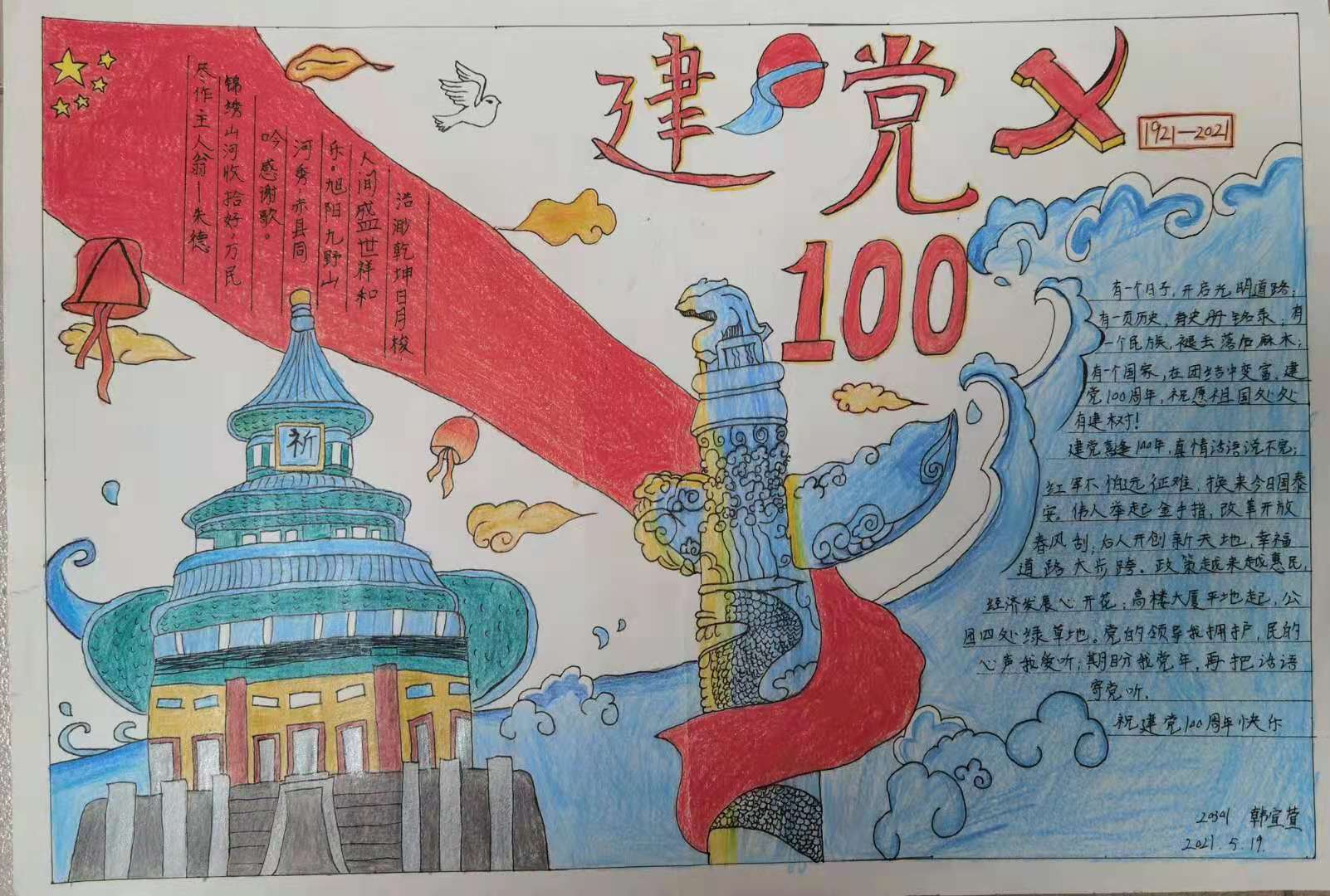 今年是中国共产党成立100周年,为了纪念党的生日,引导学生认识到党的光辉历程,怀念过去,展望未来,明白新时代的少年所肩负的责任。经贸管理系部学生助理于秀老师组织举办,关于“建党100周年”的手抄报比赛活动,并取得了圆满成功。各班同学都踊跃报名参加,提交了丰富多彩的作品。有的呈现党的光辉业绩,有的呈现党的奋斗历史……展现了良好的素质能力和爱党情怀。