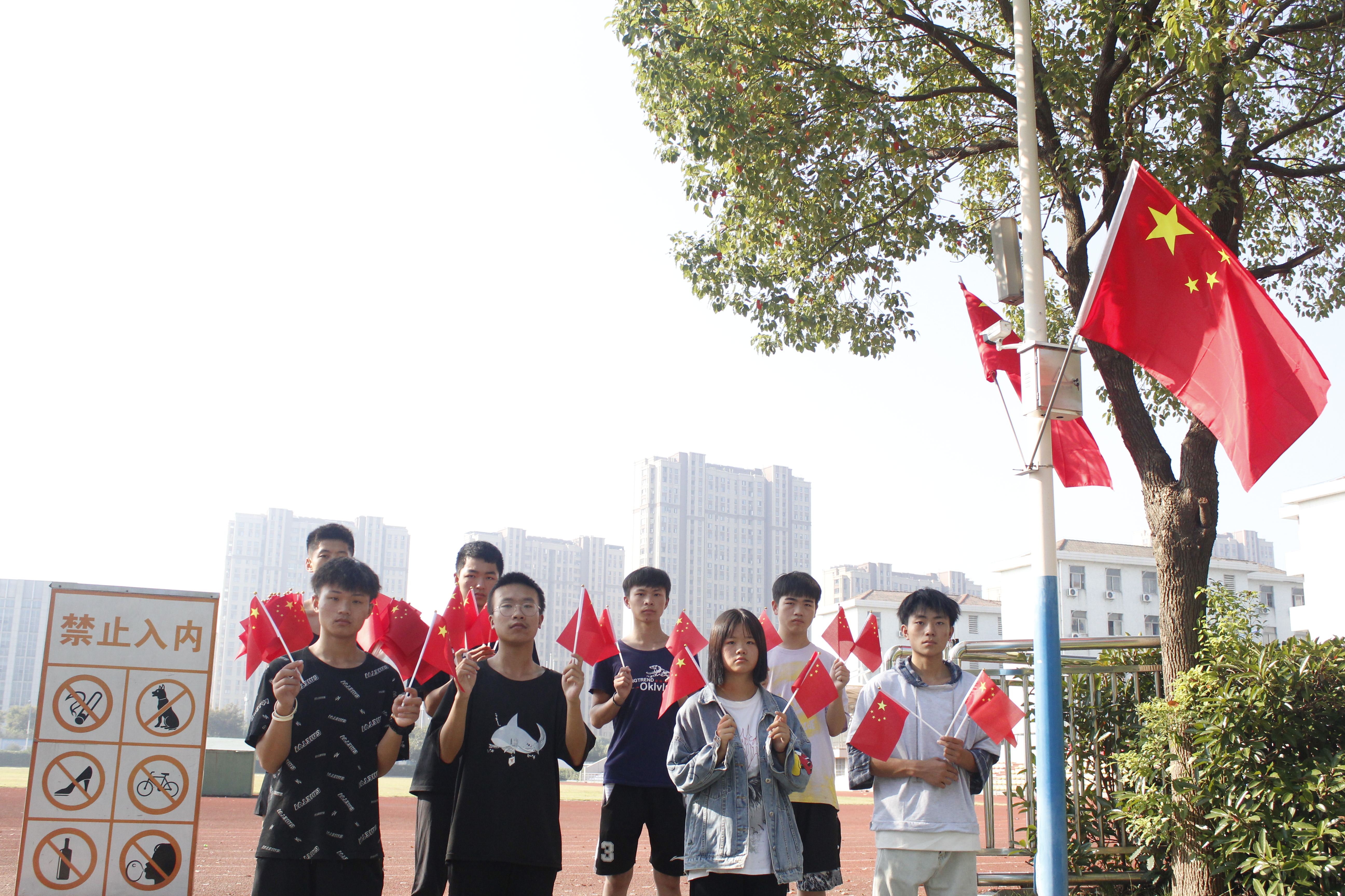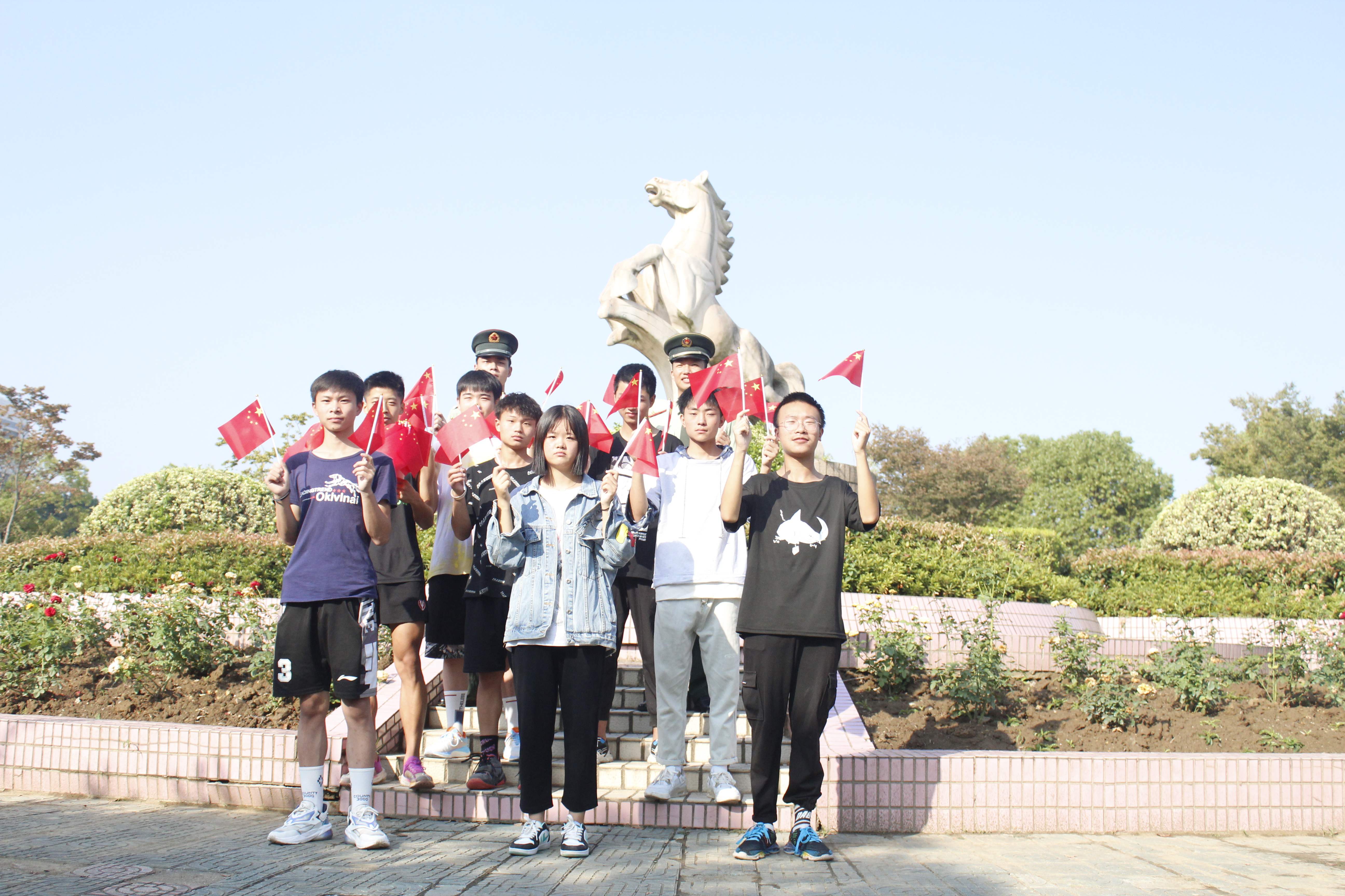 升旗仪式结束后,师生们还开展了“我与国旗合个影”活动,大家在学校的各个角落合影留念,并挥舞着五星红旗,现场气氛喜庆祥和。