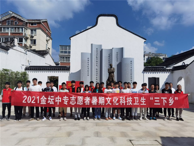 为积极响应江苏省委宣传部等四部委联合发起的“2021年全省大中专学生志愿者暑期文化科技卫生‘三下乡’社会实践活动”,引导青少年志愿者学史明理、学史增信、学史崇德、学史力行,缅怀革命先烈,更好地传承红色基因,培养爱党、爱国情怀,弘扬时代精神,增强对龙城常州的红色认知。2021年9月30日,在学校党总支的组织下,金坛中专团委、金坛区沧海志愿者服务中心组织部分志愿者、党史知识比赛获奖学生奔赴“常州三杰”纪念馆,开展“追溯红色印迹,践行责任担当”系列研学活动。