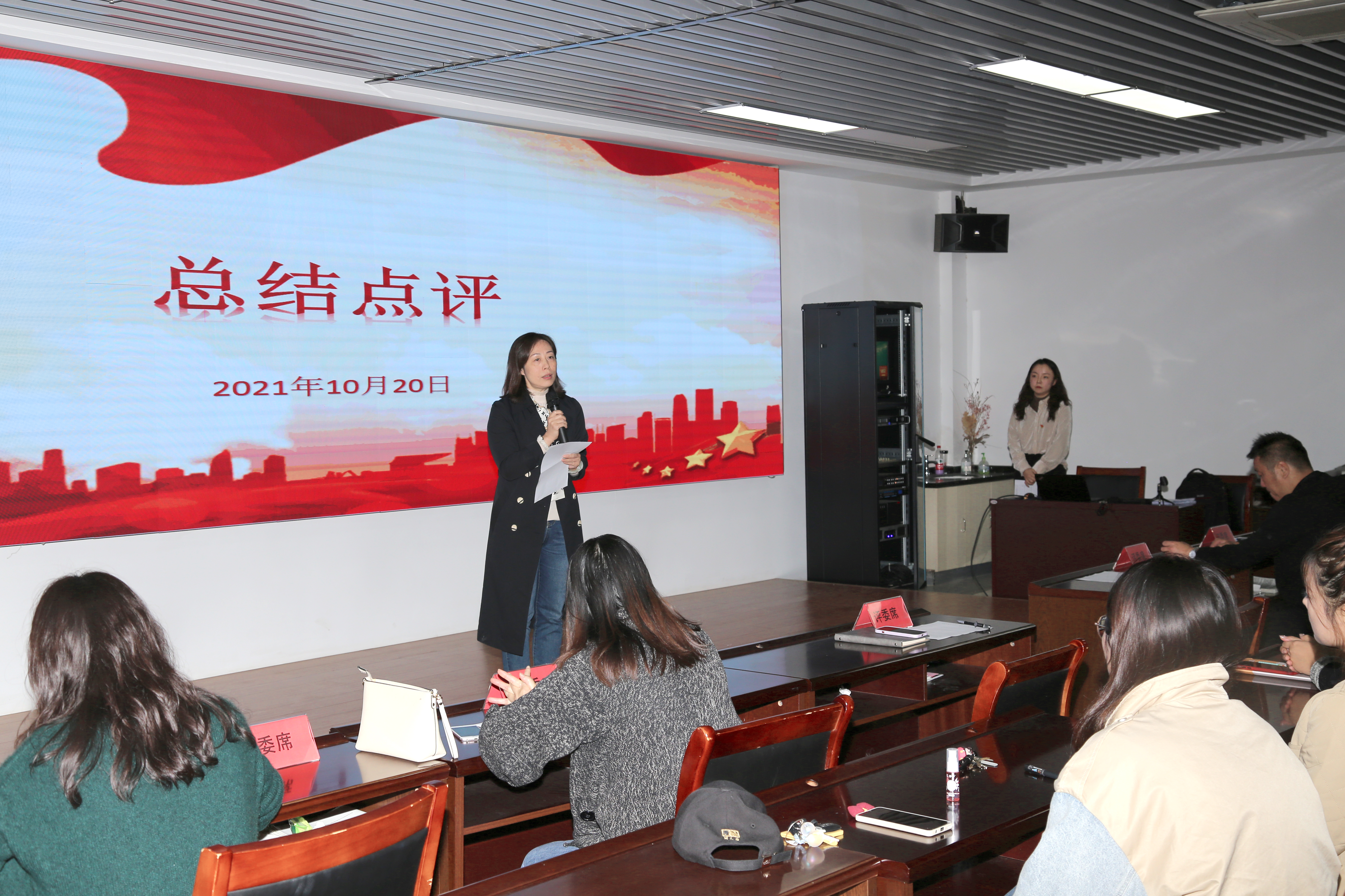 最后,校党组织林静书记对本次活动的组织给予肯定,对于青年教师们的认真准备、积极参与提出赞许,她强调,中国共产党百年的发展历史是马克思主义中国化的进程史。为党培养社会主义建设接班人是人民教师的职责。我们要善于用理论武装头脑,指导实践、推动工作。希望青年教师积极学习理论、学习时政,提升师德、提高技艺,努力成长为德艺双馨的优秀教师。