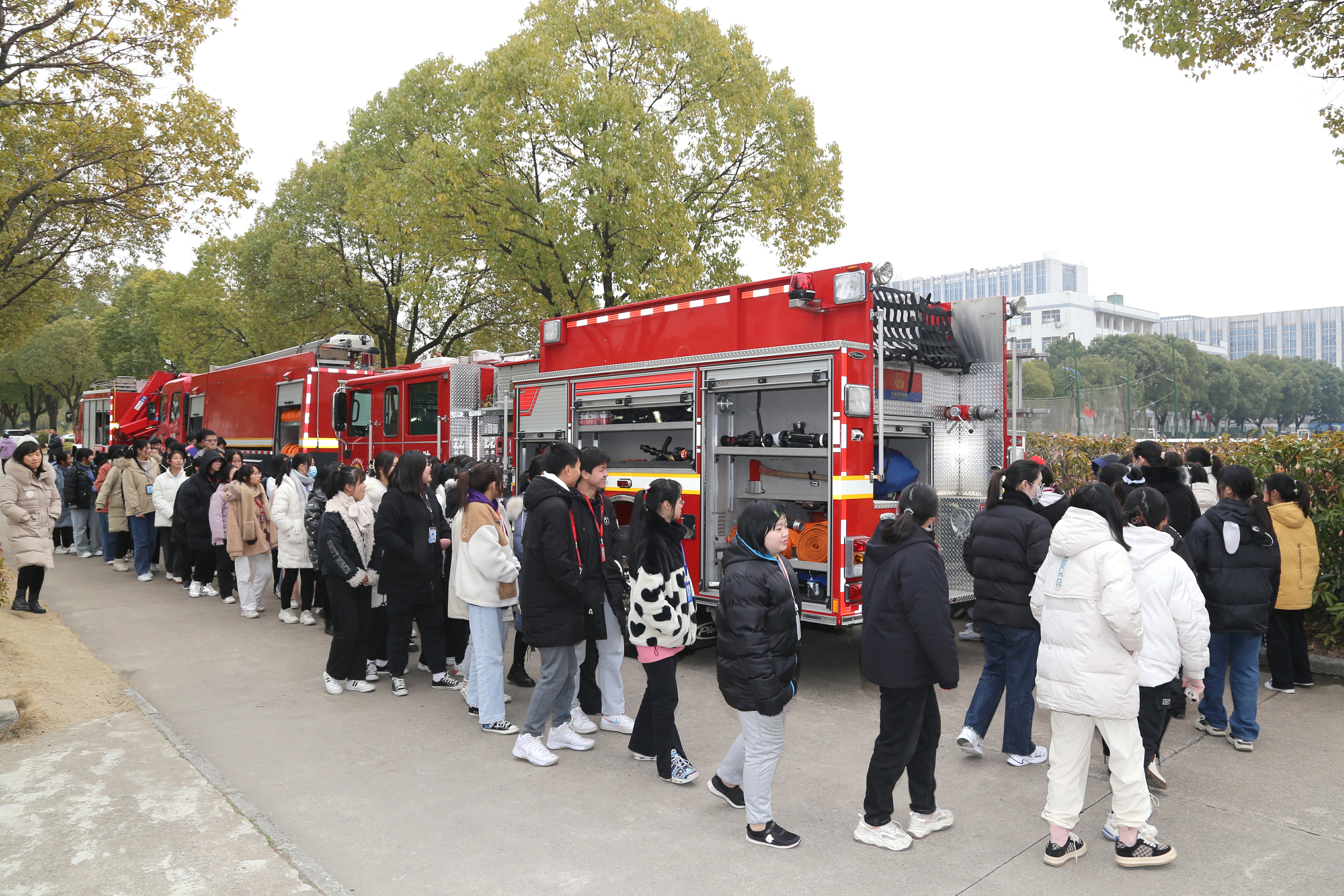 随后,师生们饶有兴趣地参观了消防车和消防工具,通过此次零距离的互动,各种各样的抢险救援装备,给同学留下了深刻的印象,让大家过足了“消防瘾”的同时,也学到了防火灭火知识。