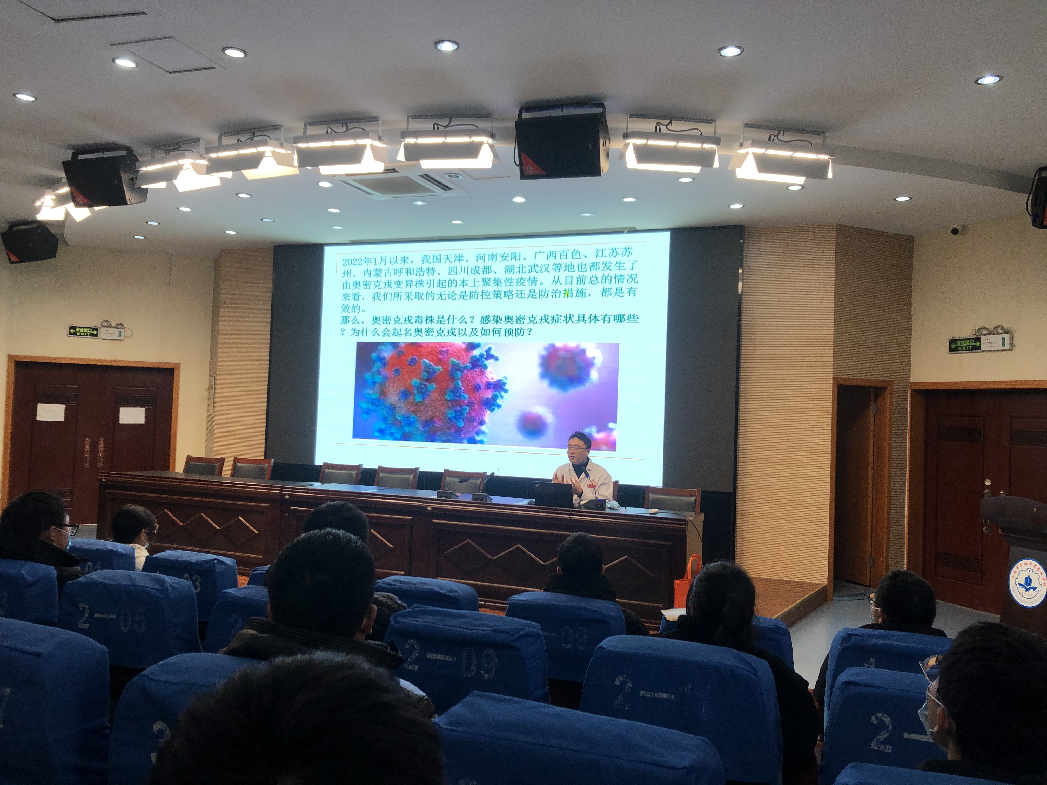 为了切实做好学校疫情防控和管理工作,打造健康平安校园,筑牢校园防疫屏障,我校于2022年2月23日下午组织各班班长、团支部书记、学生会等学生干部、保安、食堂工作人员、宿管员、驾驶员等各类人员开展“开学第一课”防疫健康知识培训。