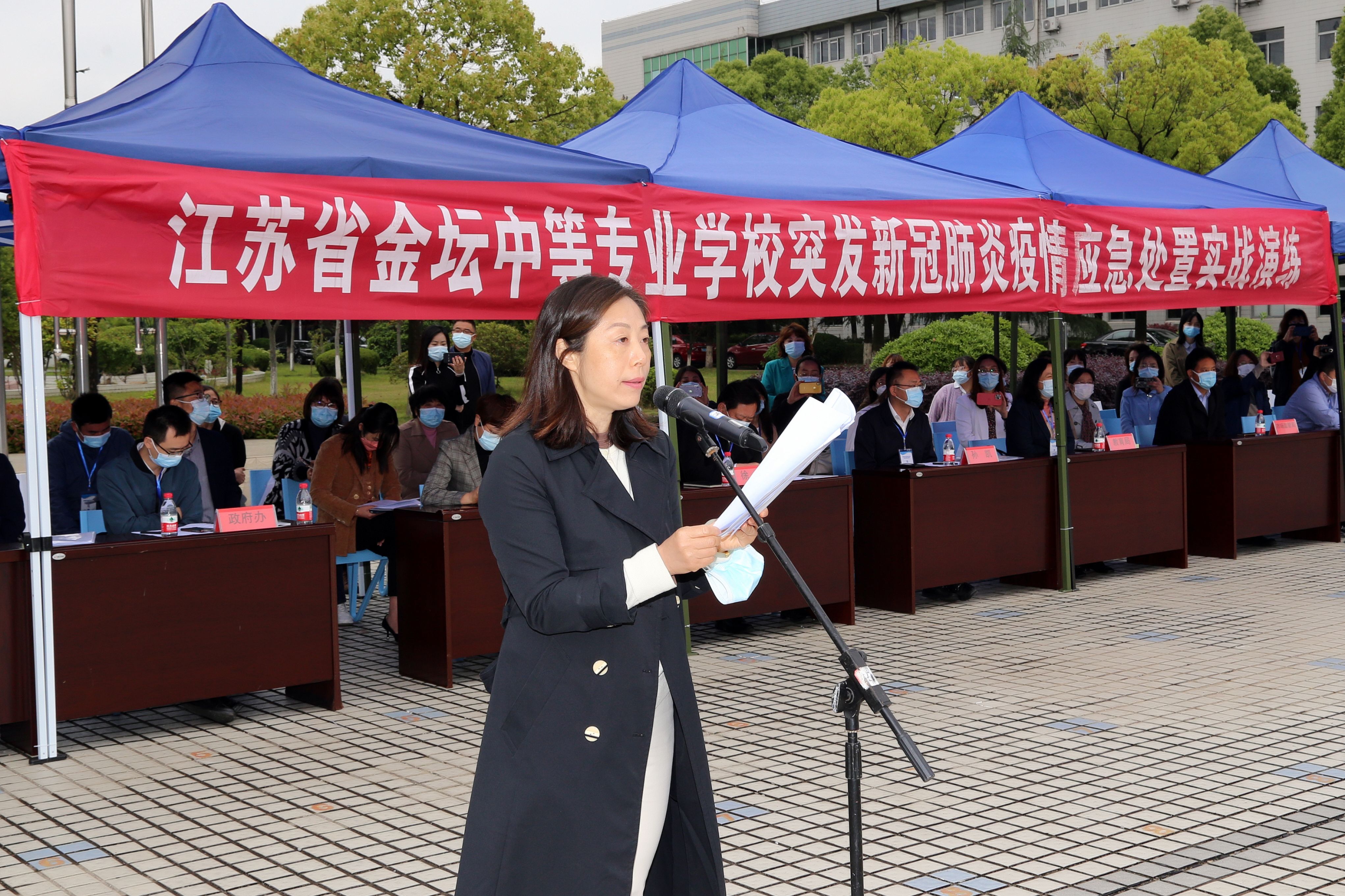 区委常委、统战部部长、副区长徐俊,东城街道党工委书记孙凯,区委教育工委书记、教育局局长吴军华,区政府办、区教育局、东城街道、市场监督局、金坛公安分局等部门分管负责同志以及各中小学、幼儿园负责人,观摩了本次演练。演练由校党委书记林静主持。