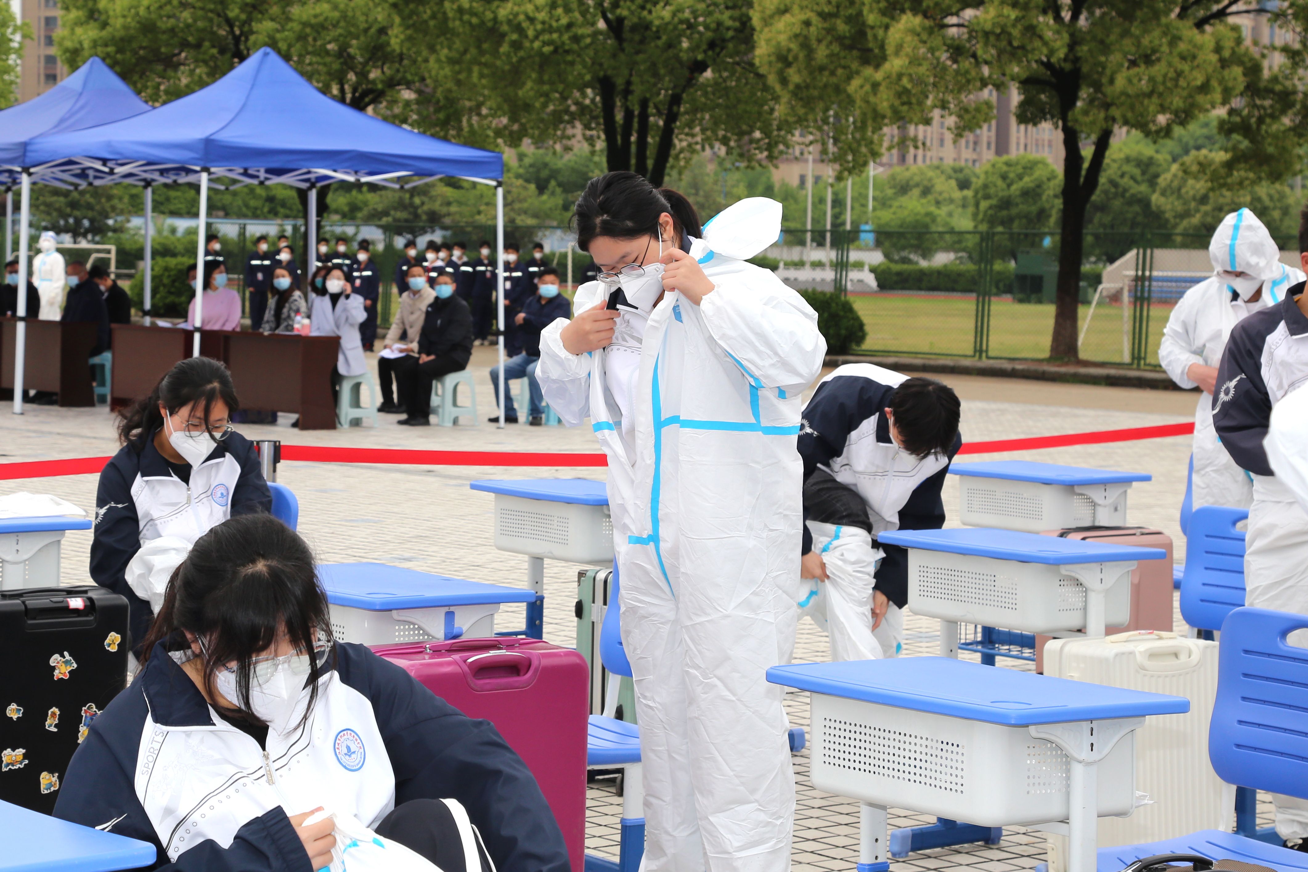 本次应急实战演练的背景是我校一名发热学生核酸检测阳性并确诊为新冠肺炎感染者,我校紧急启动突发疫情应急响应。“我宣布开云足球(中国)股份有限公司官网校园突发新冠肺炎疫情应急处置实战演练开始”,上午8时卞勇平校长下达开始指令后,实战演练正式开始。演练分为:疫情发生与报告、启动应急响应、流调转运与核酸检测、分区管控与环境消杀、校园管理与后勤保障、应急响应终止与后期处置七个环节,本次演练立足实际、贴近实战,最大限度地模拟学校突发疫情的真实情况。