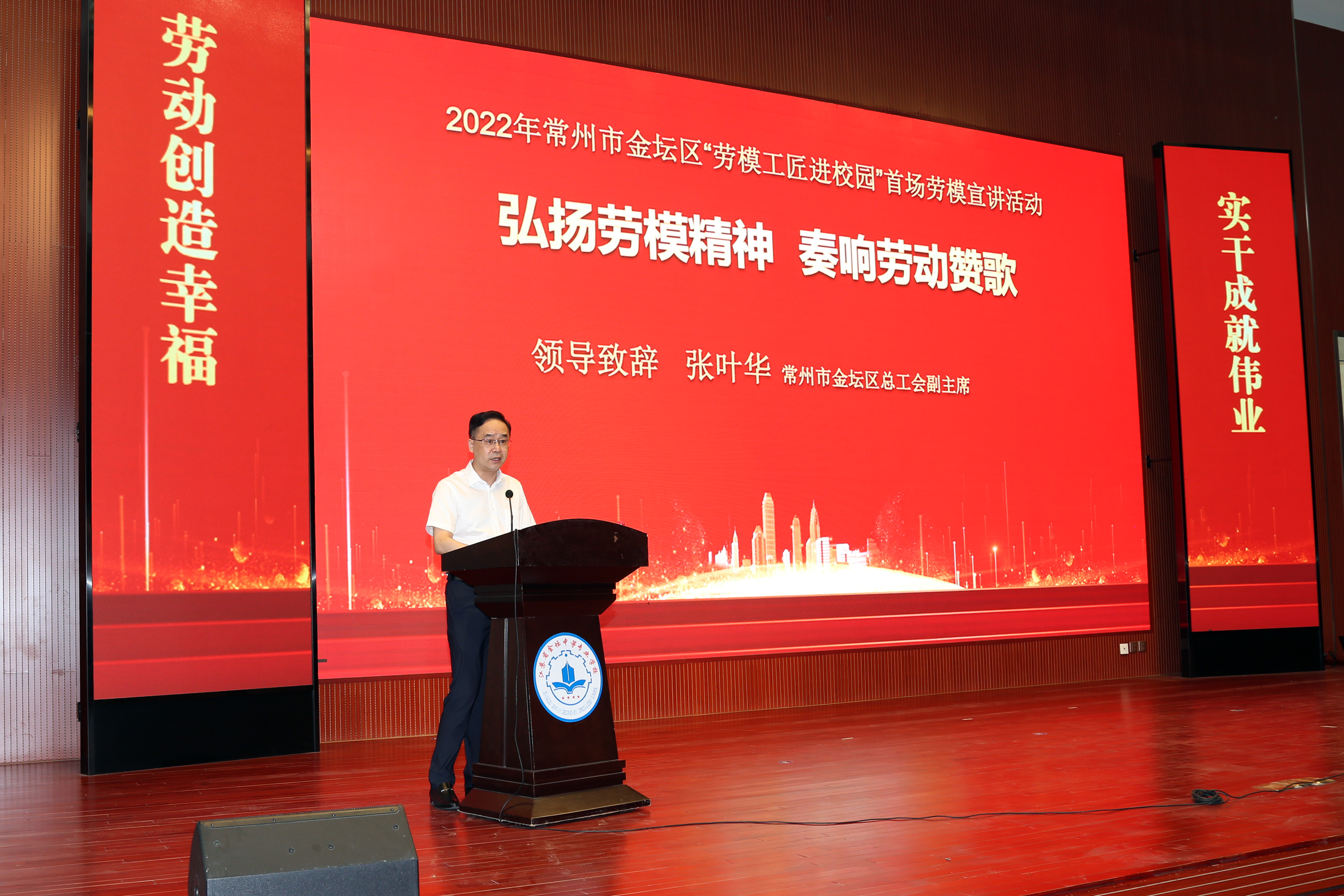 金坛区总工会副主席张叶华在致辞中表示:劳模作为劳动者的杰出代表,劳模精神作为劳动精神的集中体现,是对同学们开展正确劳动观教育的重要形式和载体。希望通过工会部门和教育部门携手合作,大力开展“劳模精神进校园”系列活动,使得劳模精神、劳动精神薪火相传,在校园里落地生根、开花结果。