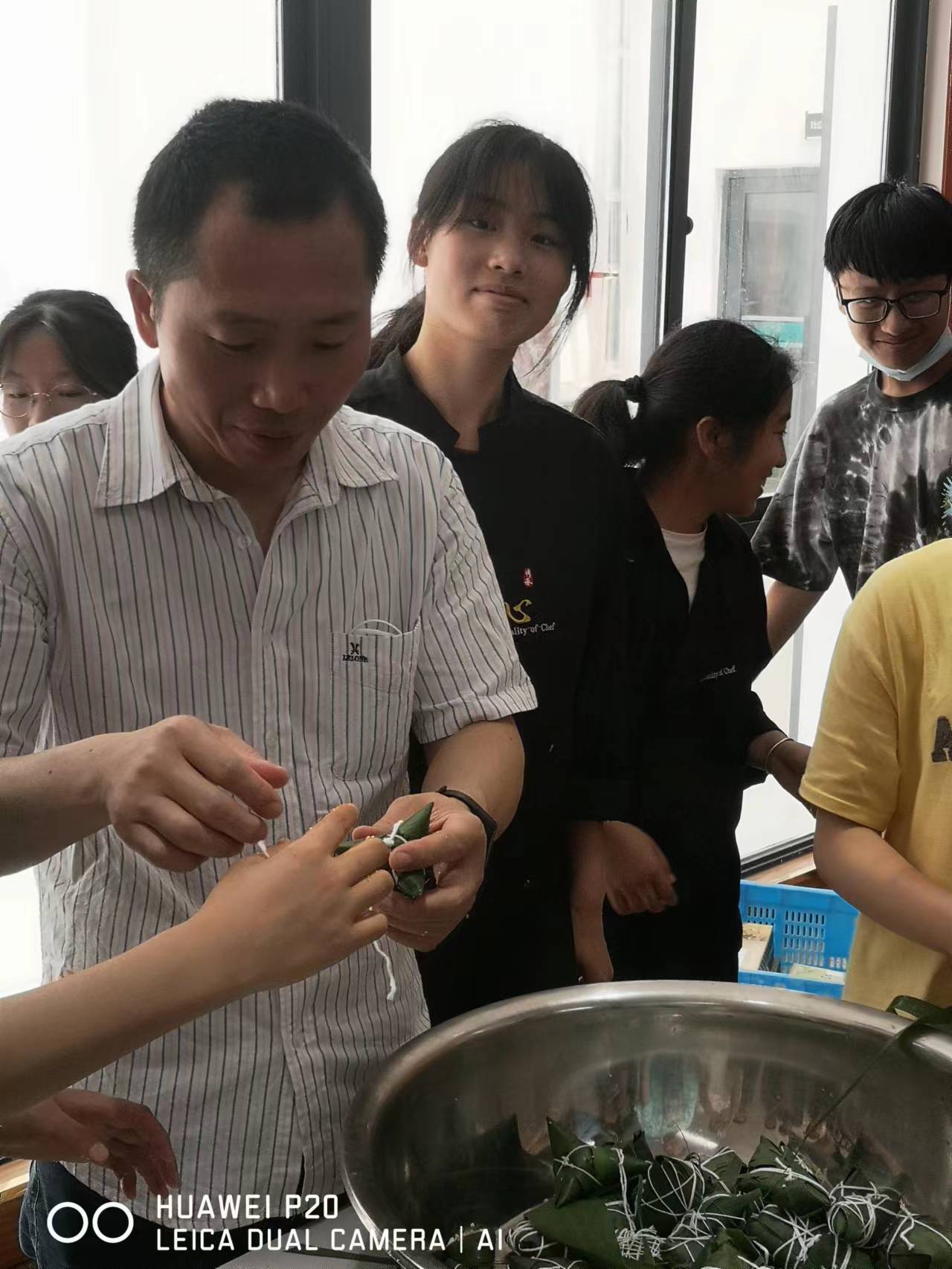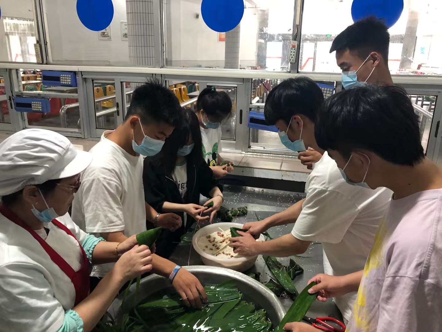 6月3日端午节当天,留校学生们在食堂工作人员的指导下,沉浸于“包粽子”的乐趣中,一片片粽叶在同学们手中飞转,劳动的快乐让手中的粽子更香甜。