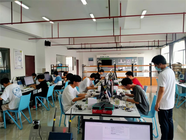 为提高学生职业发展的综合能力,金坛中专智能制造系成功开展了应用电子技术专业领域1+X传感网应用开发职业技能等级证书试考评。6月18日,金坛中专应用电子技术专业12名学生在金坛中专考点参加1+X传感网应用开发职业技能等级证书考试。考试分理论知识考核及实操考核,全面检验学生的理论素养和实操能力。 考前,从实训室、考务办公室、备料室、考场的安排布置以及各种物资的购买到师资培训、考前动员、考前培训、模拟考试、考务安排等方面进行了精心筹备。
