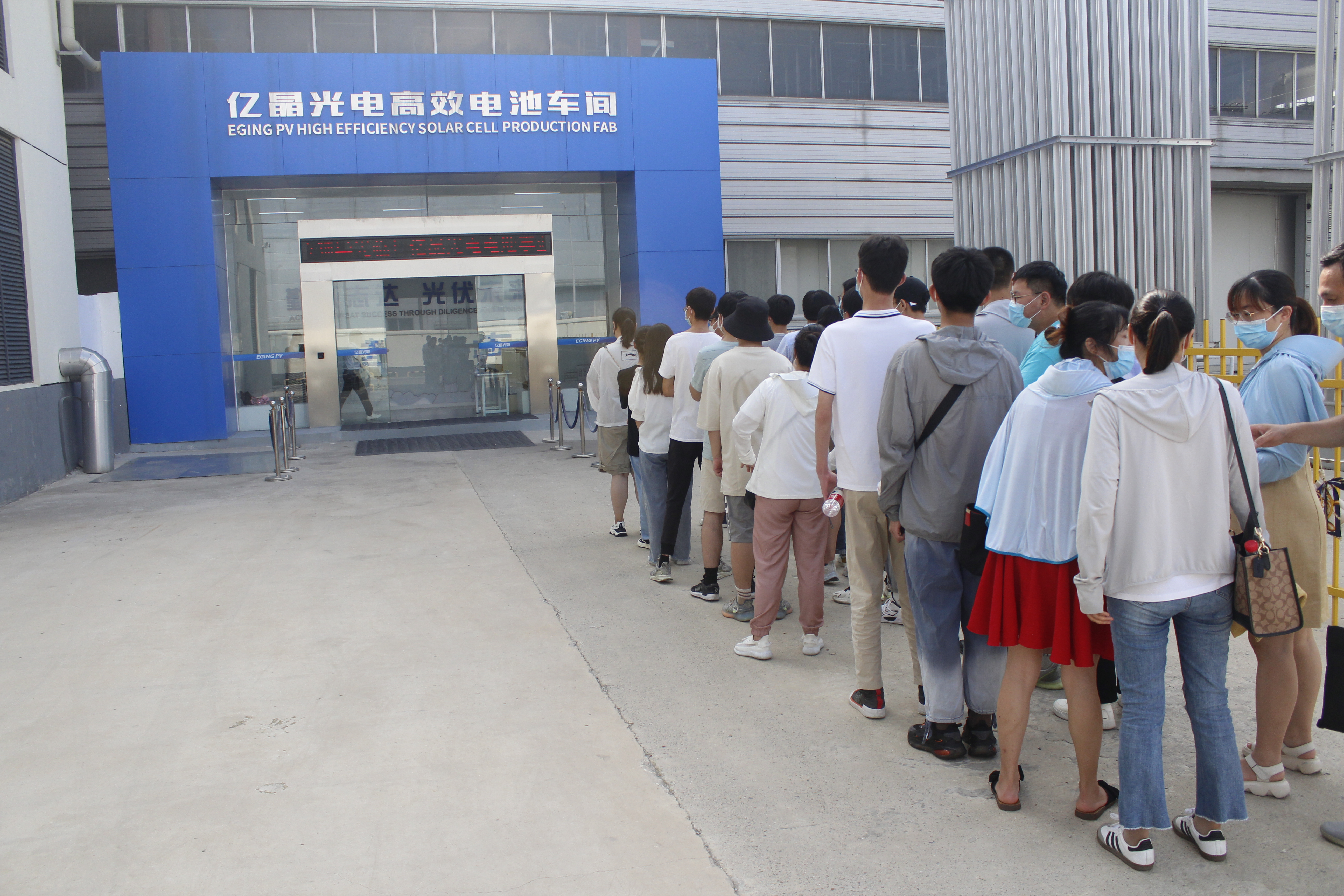 上午,师生志愿们首先参观了常州亿晶光电科技有限公司,常州亿晶光电科技有限公司是亿晶光电科技股份有限公司的全资子公司,创建于2003年,是一家专业从事光伏发电产品的研发、生产和销售的高新技术企业,集晶棒拉制、硅片切割、电池制备、组件封装和光伏发电系统为一体,具有年产单(多)晶太阳能电池组件1000MW的生产能力。“EGing PV”已经成为国内外光伏行业的知名品牌。该公司研发经理刘阳和组建实验室技术员钟俊杰介绍了光伏发电的优势和未来光伏发电项目的前景和规划,使大家对光伏绿色发展有了更深刻的认识。