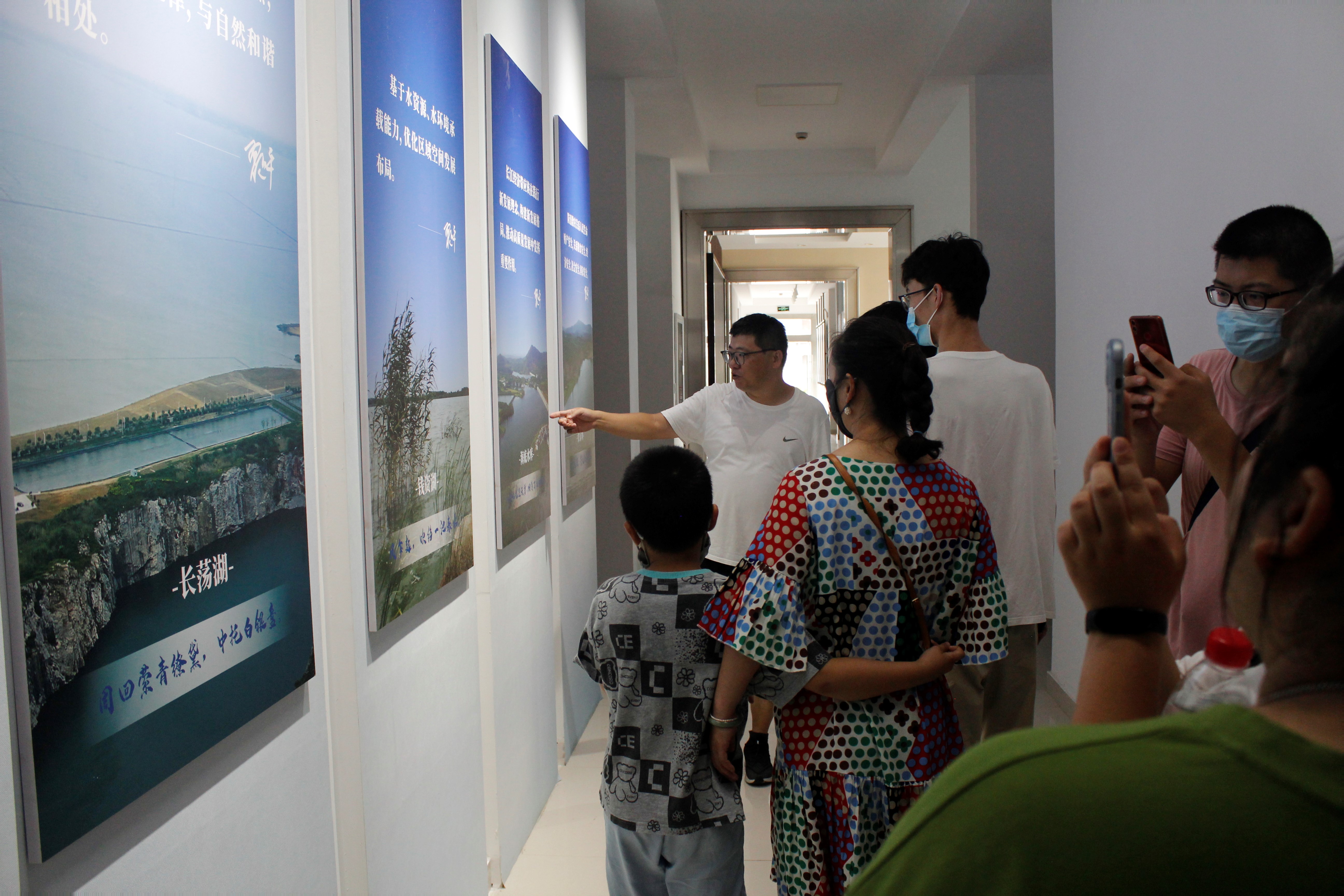 水利站内,非常有特色的就是金坛水情馆。步入馆内,主题景墙碧水倒映,流水曲线极富韵律。“金水安澜”篇章,展现金坛人民万众一心、与水抗争的情景。通过VR设备,可一览愚池湾国家水利风景区、长荡湖、钱资湖等水生态、水自然景观,直观感受并体验金坛水利建设成果。“金山绿水”篇章,集中展示金坛水利建设者风采,各级河长坚守护河初心,扛起治水重任,创新工作机制,为美丽金坛注入“水动力”。在智慧水利展区,通过多媒体搭载电子地图,可直观了解金坛水利运作体系,并设置寓教于乐的互动功能。