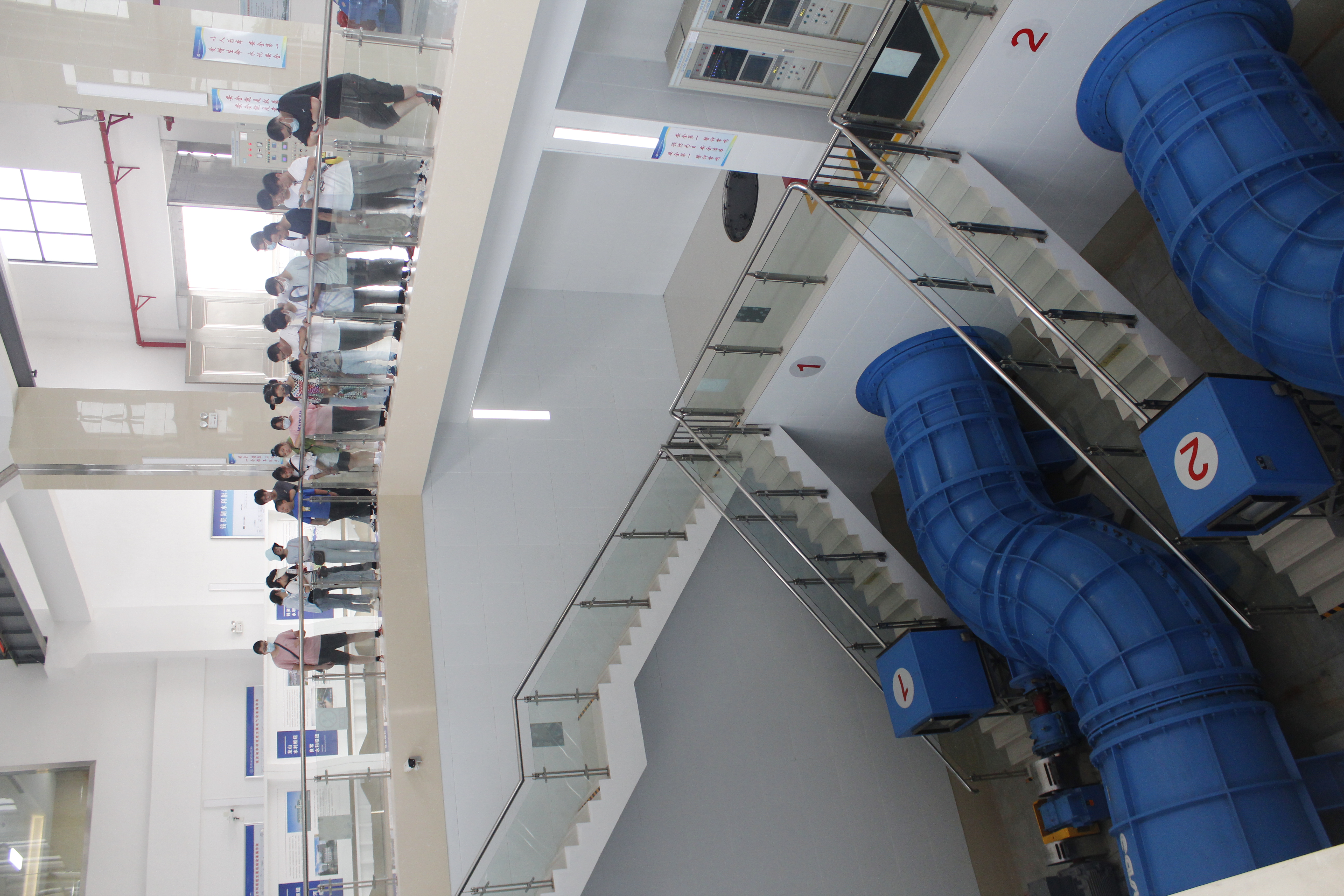 上午第一站,师生参观金坛钱资湖水利枢纽,在水利局徐刚工程师的引导解说下,了解了金坛城区的水利水文情况。钱资期水利枢纽位于钱资湖东常侧新建河上,是新孟河延伸拓浚(金坛区)及综合配套整治工程之一,也是实现防共排涝、抗早补水、水环境改善目标的重要水利工程。