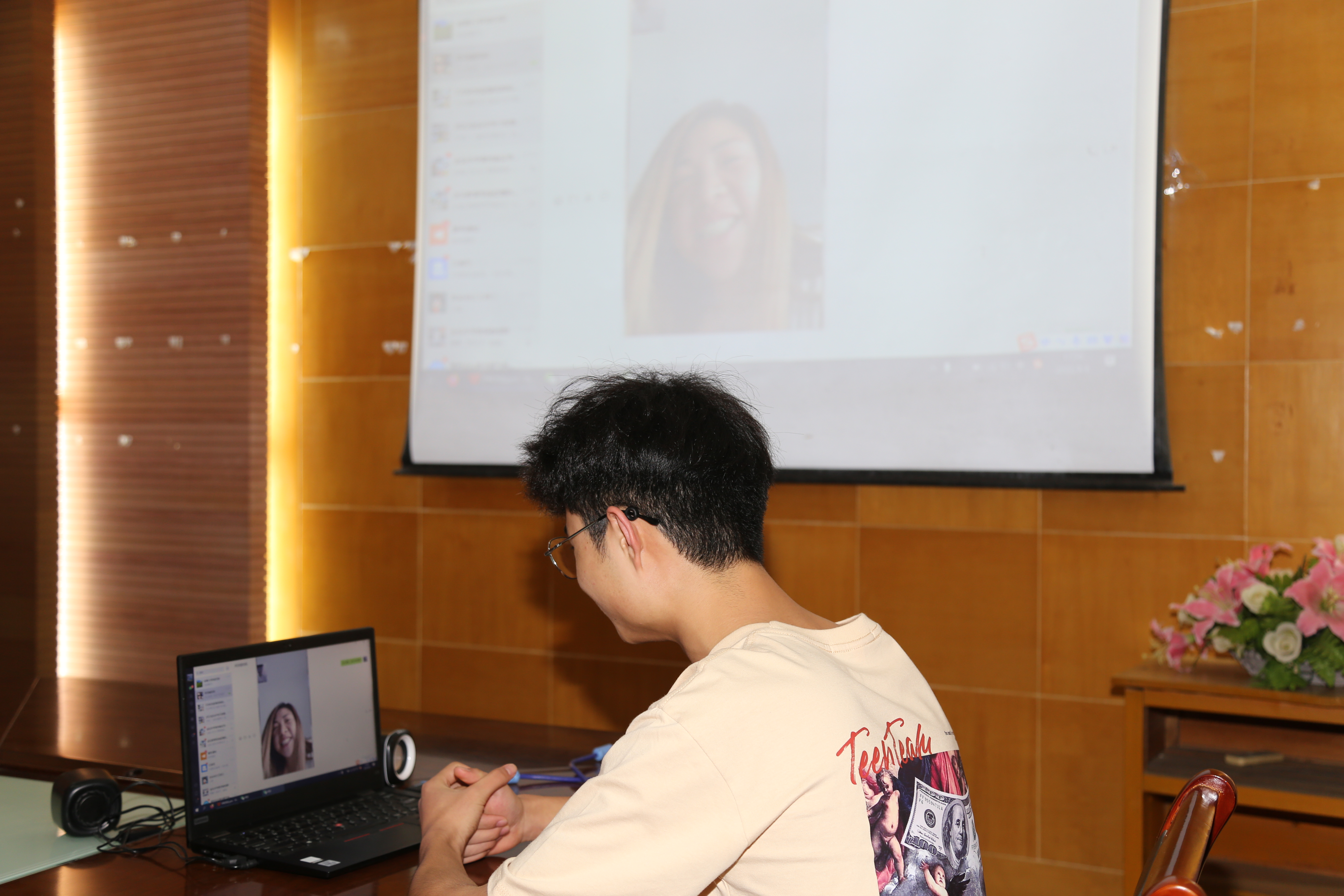 邓羽翡同学今年暑假留在金坛勤工俭学没有回家,学校特意安排他的妈妈和家人与邓羽翡视频聊天,邓羽翡表示他在金坛学生和生活都很好,感恩妈妈和家人的付出,请妈妈和家人不用担心。