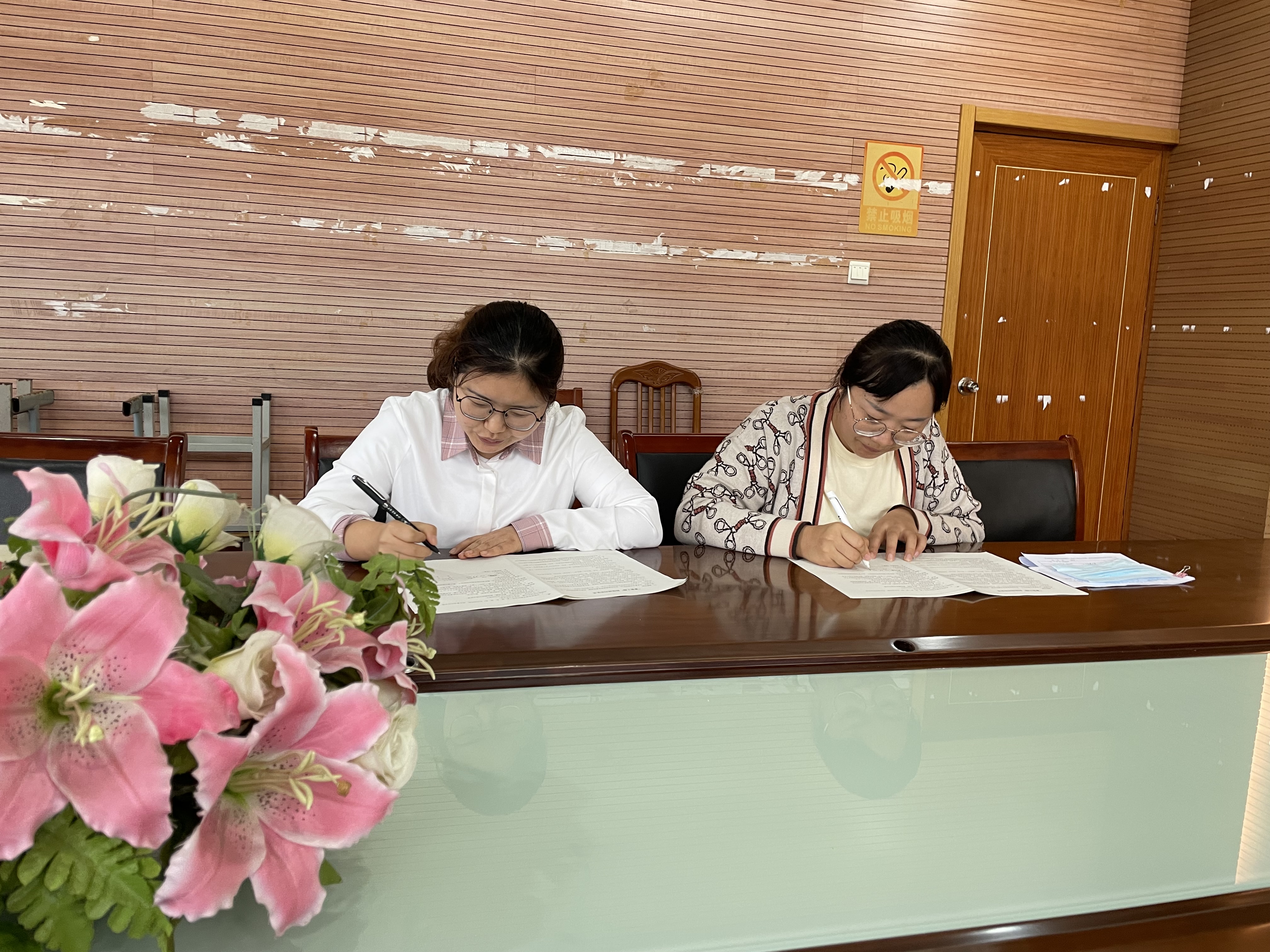 最后,结对双方在《“青蓝工程”师徒结对协议书》上签字。