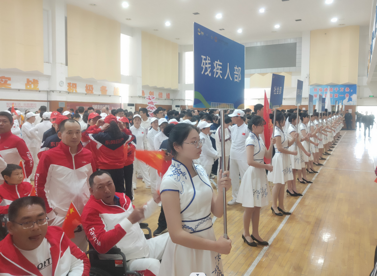 场上有的为配合代表队表演需要而耐心等待,有的为残疾人代表队放慢了步伐,有的为代表队口号调整节奏等等,真正展示出旅游专业的服务精髓。