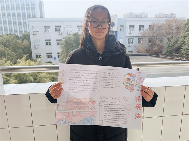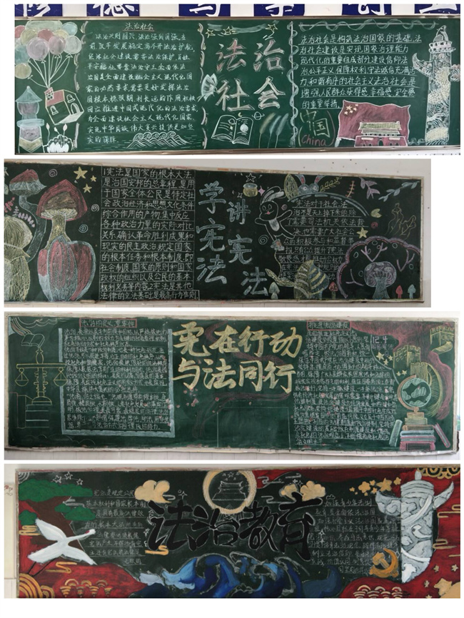 4.为充分发挥板报阵地在学校教育宣传活动中的作用,宣传学校的相关精神,丰富同学们的视野、增长见识,学校学工处精心策划开展了以宪法为主题的班级板报评比活动。同学们用书写和绘画的方式与法治元素相结合,呈现了一幅幅精美的宣传画和手抄报,这些设计新颖、构图巧妙、色彩斑斓的作品里蕴含了同学们对宪法的理解与感悟。