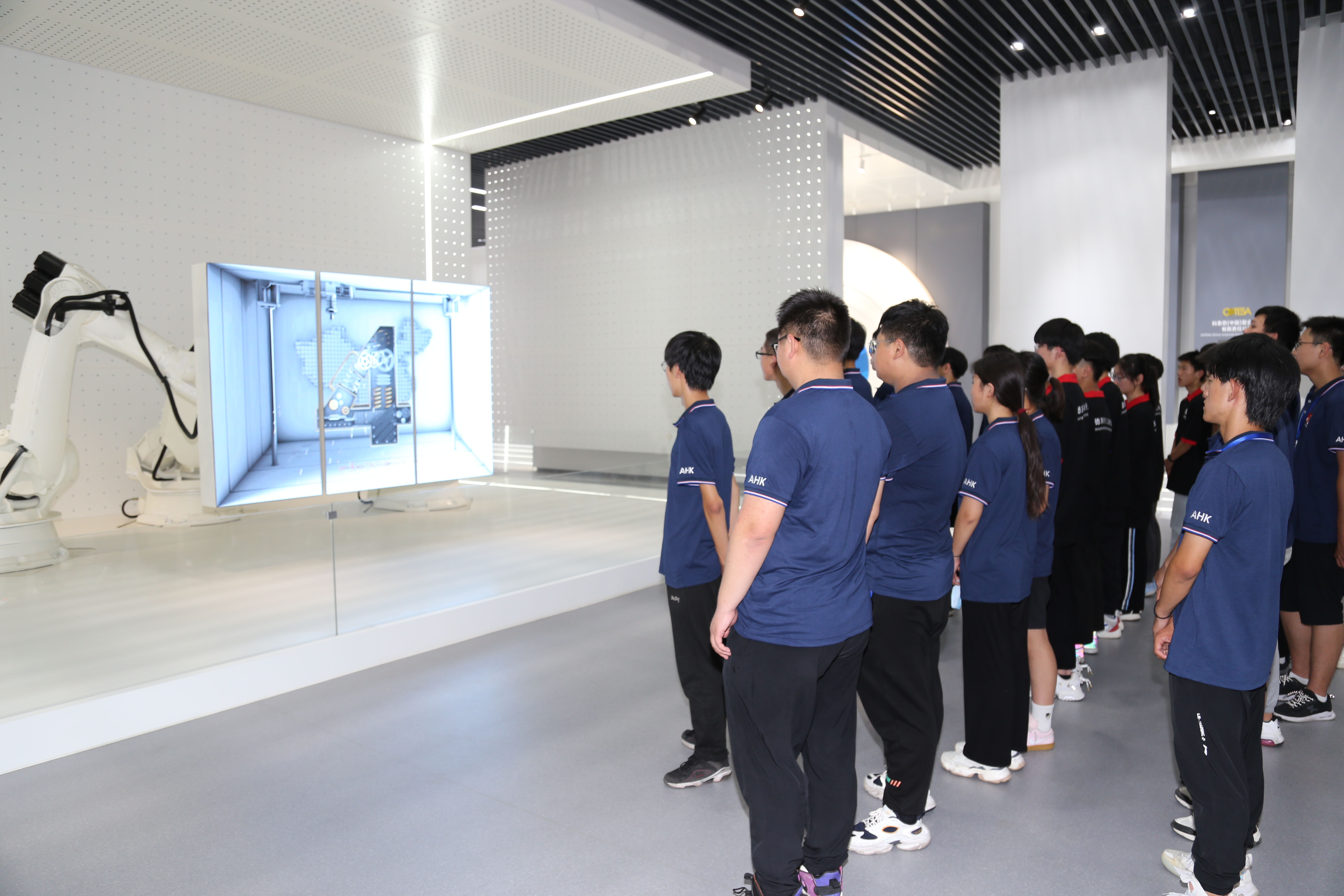 揭牌仪式后,师生们观看了园区宣传片,随后兴致勃勃地参观了中德(常州)创新产业园交流中心展厅,展厅全面展示了现代智能制造产业发展现状及趋势,进一步开阔了视野、了解未来就业岗位的要求,更加明确了当前的学习任务及就业方向,使同学们受到了一次深刻的思想和生涯规划教育。