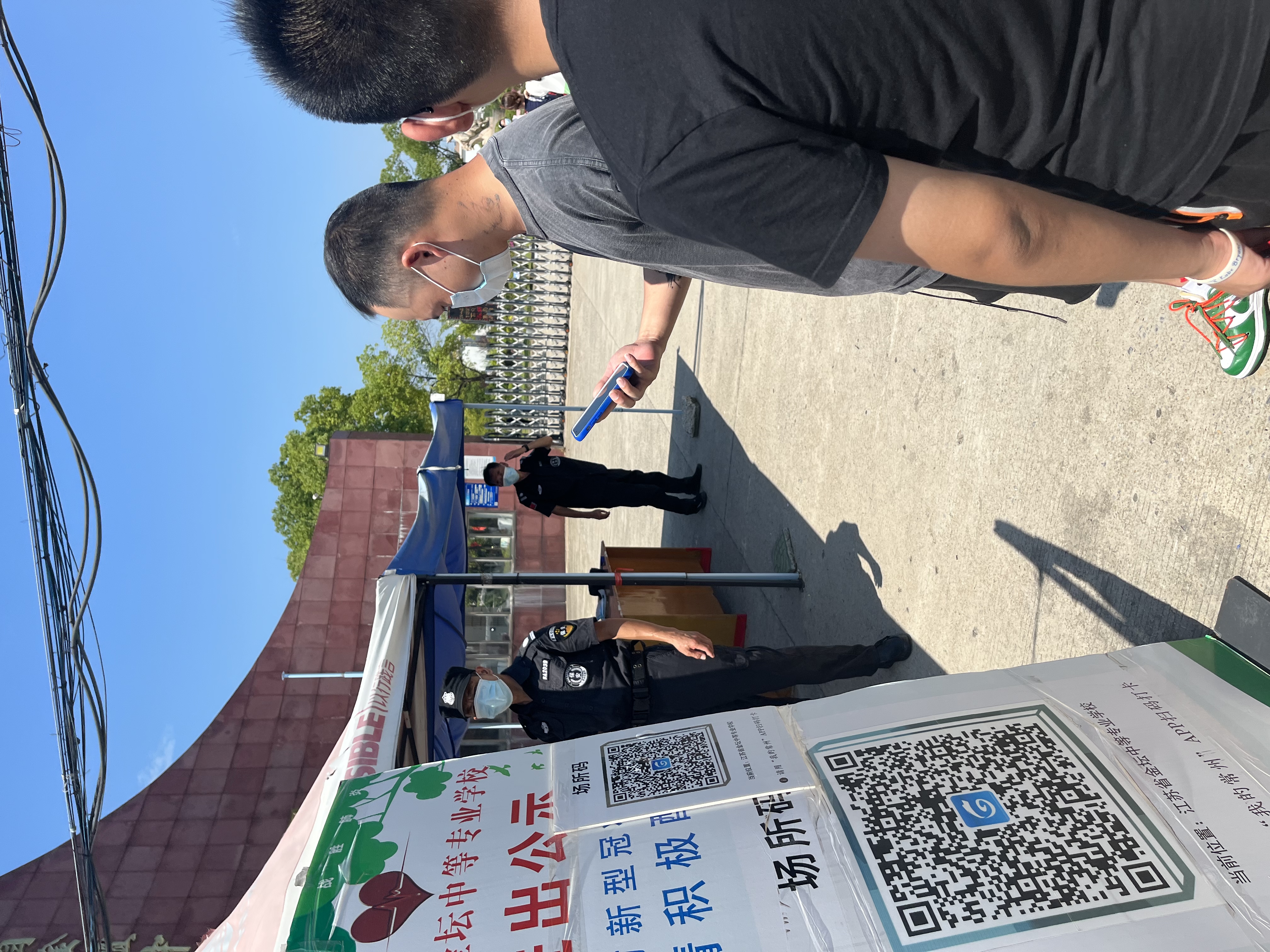 学校在东门入口处设立迎新生接待点,严格执行疫情防控要求,入校前学校保安人员对新生及家长的健康码、行程卡、场所码等进行一一查验,并进行体温测量。