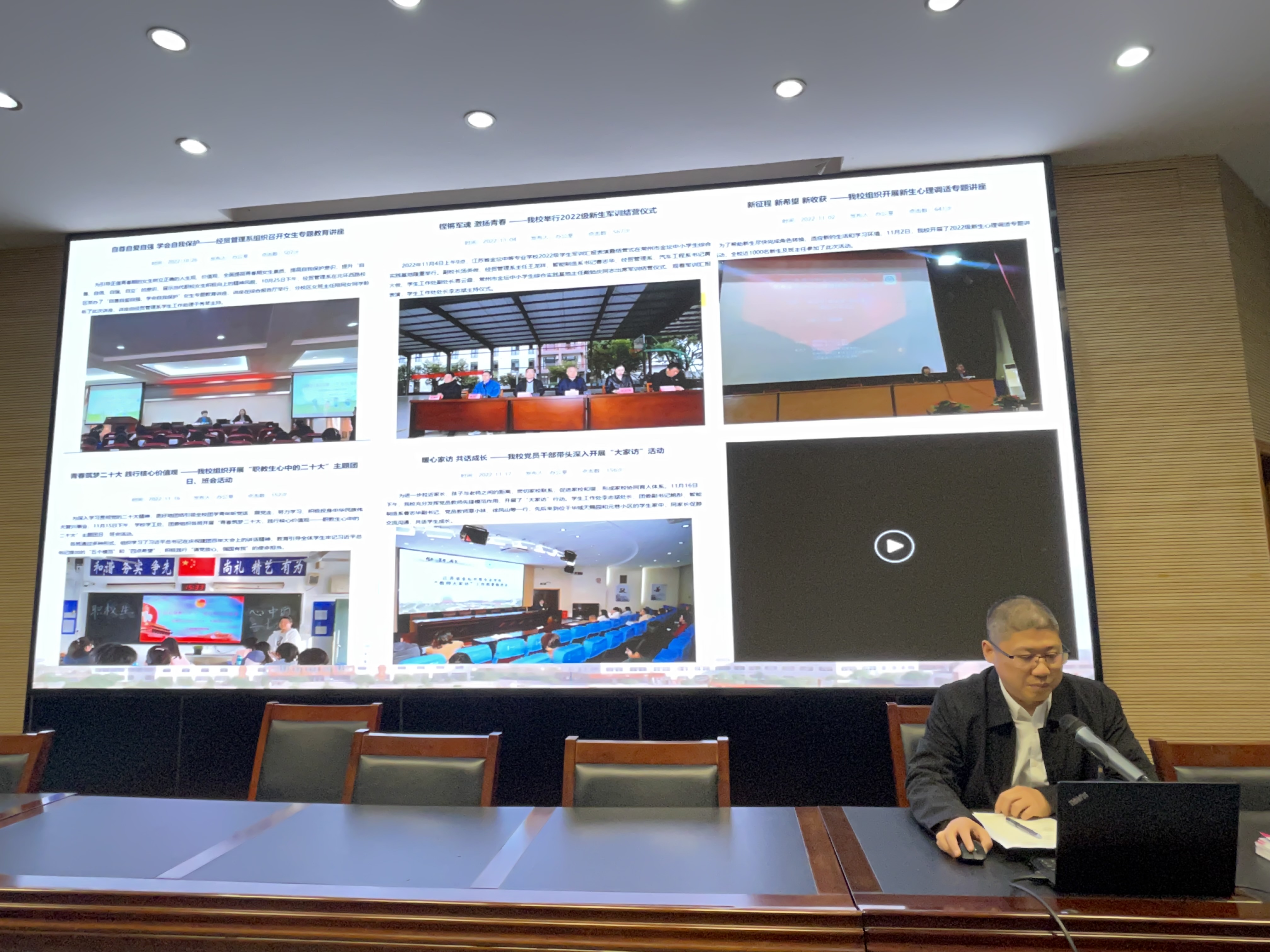 班风、学风是立校之本、治学之基。为进一步加加强班风、学风建设,营造良好育人环境,提高班主任整体素养和工作实效,2022年11月21日下午,我校召开全校班主任11月份培训工作例会。汤英俊副校长、学工处、各系部学生管理人员、全体班主任参加了此次培训工作会议。培训工作例会由学生工作处(保卫处)李志斌处长主持,活动共分为四项议程。