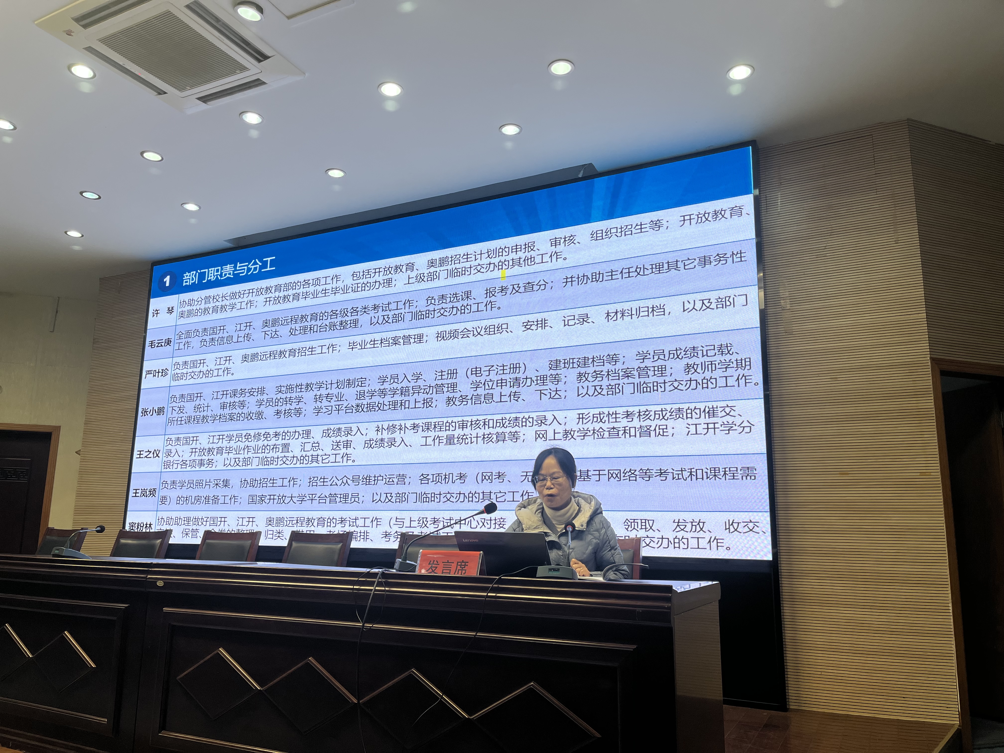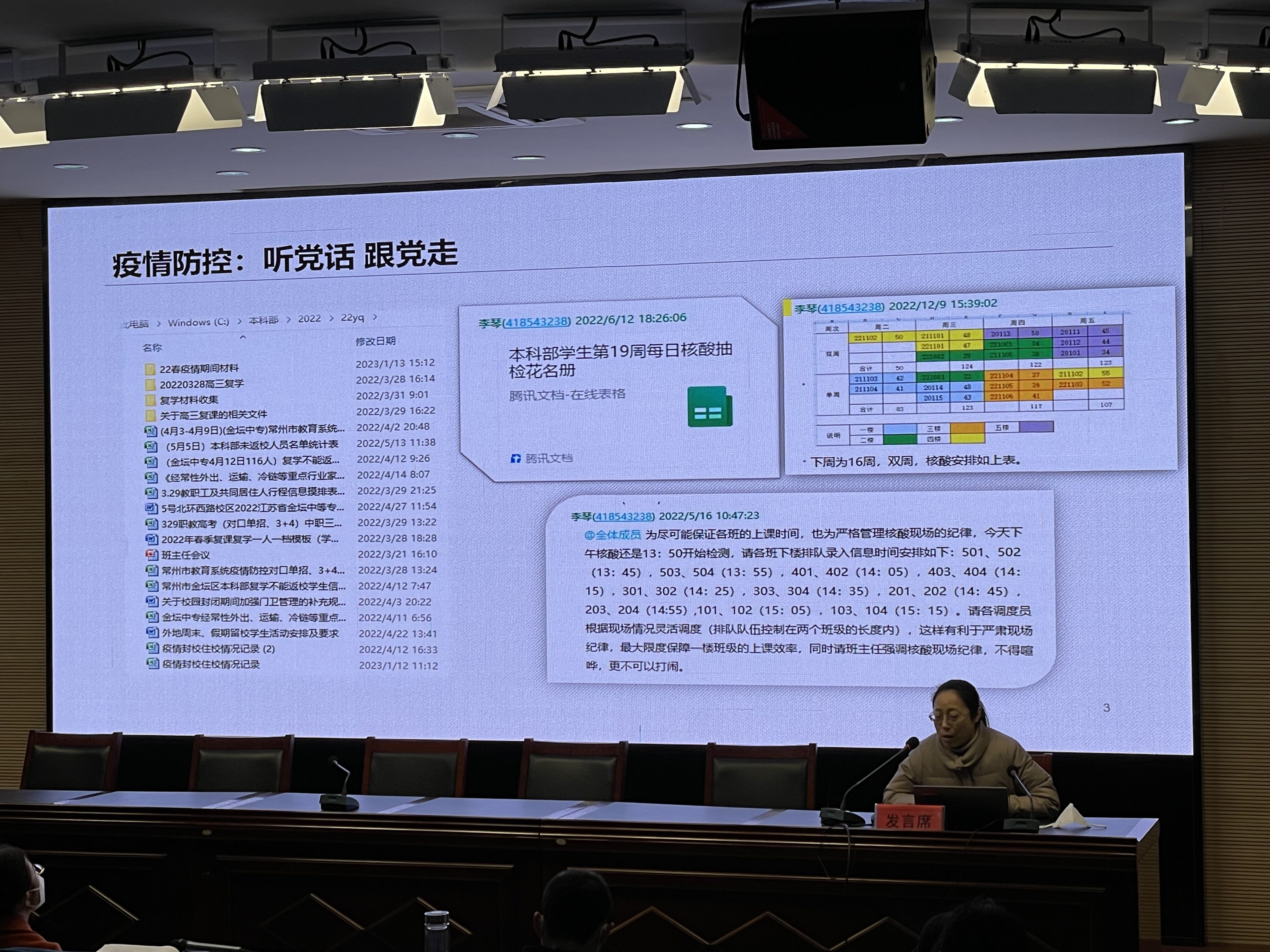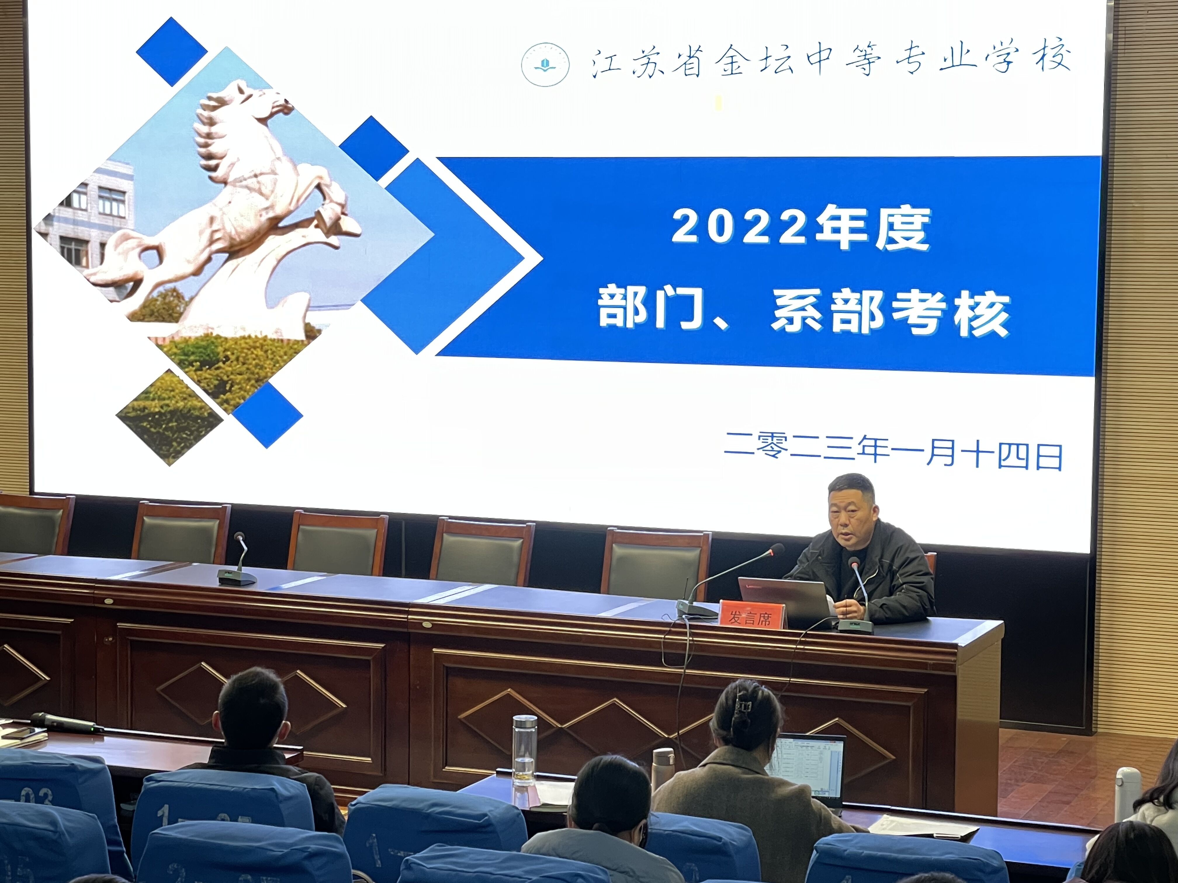 随后,学校12个职能部门的负责人分别汇报2022年部门工作开展情况、取得的成效和工作亮点,分析了工作中存在的问题与不足,并提出2023年的努力方向。