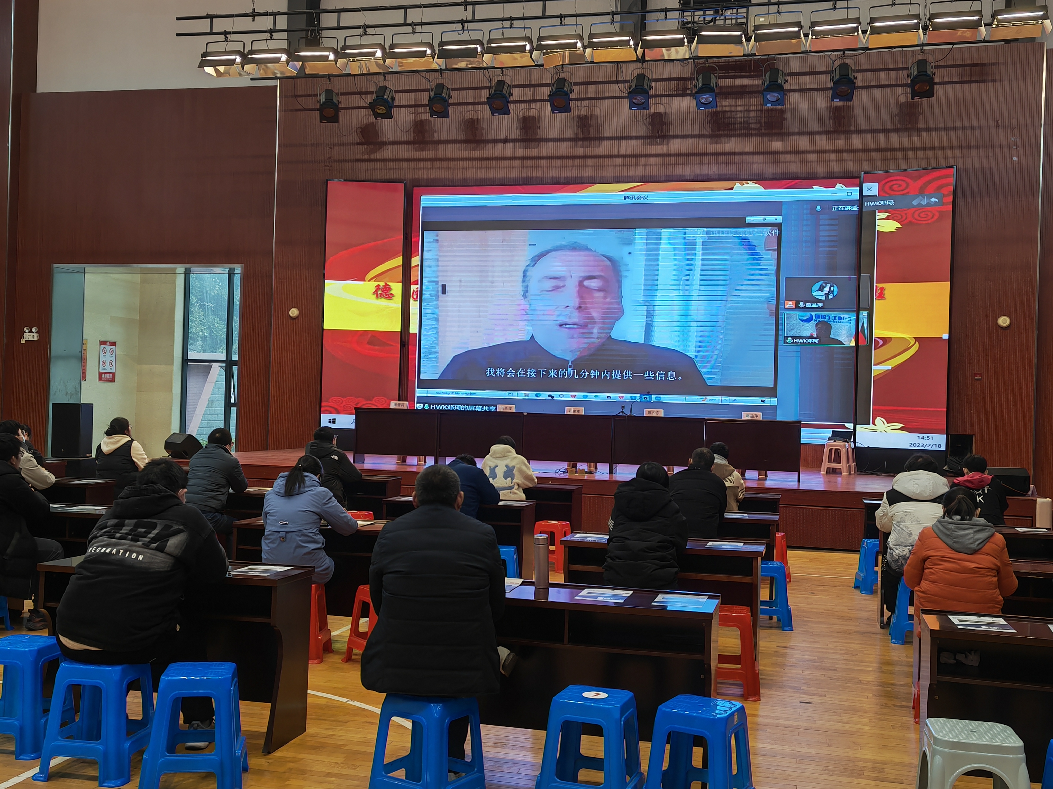 2月18日下午我校在体育馆举行了德国手工业行会HWK-金坛中专中德国际班组班动员会。出席动员会的有中德(常州)创新产业园管理办公室孔家幸、HWK中国部项目总监周雪莉、开云足球(中国)股份有限公司官网副校长汤英俊、校企合作处处长陈云东,校企合作处副处长葛益萍以及2022年智能制造装备技术专业的学生及家长。会议由我校校企合作处陈云东主持。