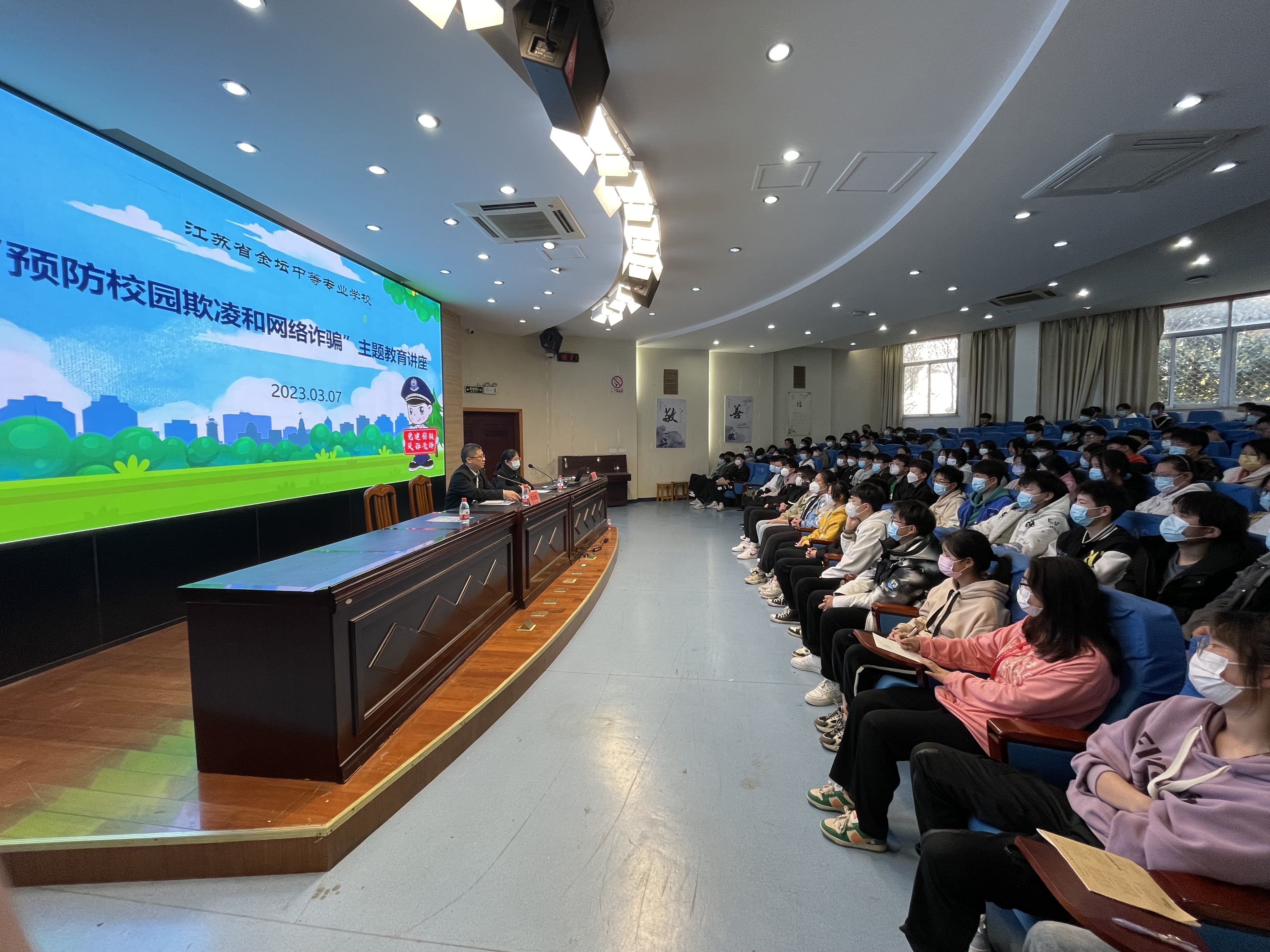 为预防校园欺凌事件和网络诈骗的发生,进一步增强学生自律意识和自我保护意识,培养学生良好品行,有效预防未成年人犯罪,有效遏制电信诈骗,切实保障师生的财产安全,2023年3月7日下午,常州市职业院校章小妹名班主任工作室联合东城派出所开展了“预防校园欺凌和网络诈骗”法制安全主题教育讲座。