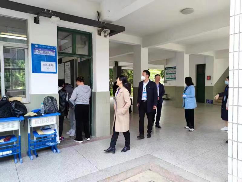 4月14日区教育局副局长张五芳、基教科科长朱春平、安监科科长谭年平在金坛中专校领导陪同下巡视了考场,对考试各个环节的服务和管理工作进行了全面细致的检查和指导,对本次考点组织工作给予了高度的评价,并进一步强化安全意识和防控意识,切实做好服务和保障工作。
