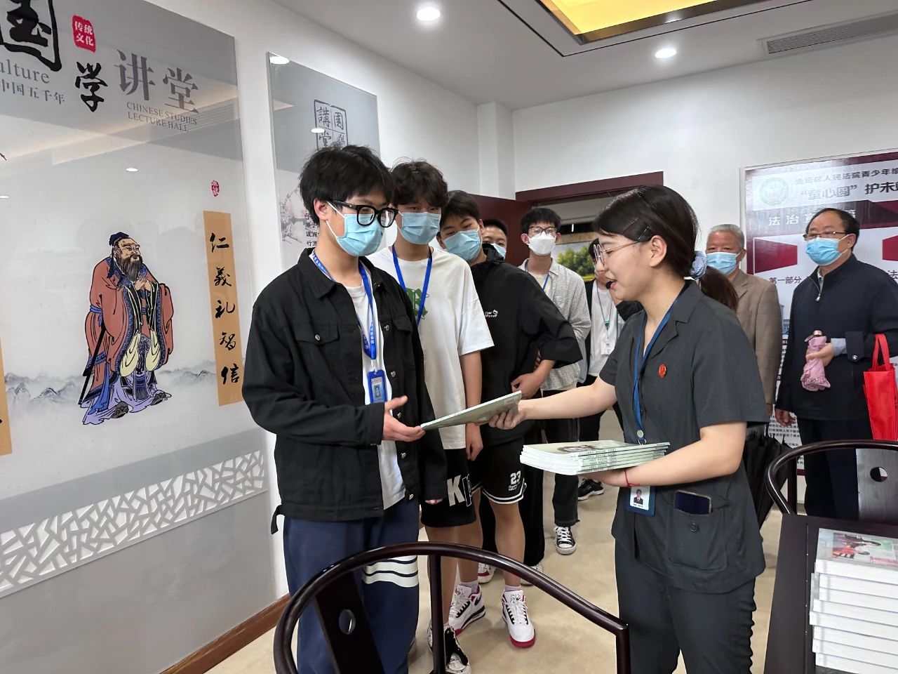 庭审结束后,全体师生还参观了法院的诉讼服务中心和执行中心,讲解员向大家介绍了诉讼服务中心“一站式”建设成果、法院文化等,通过实景观摩,加深了学生对法律、诉讼、强制执行的了解。少年及家事审判庭法官王蕊、法官助理凌子齐为师生们送上常州中院组织编撰的全国首部保护未成年人案例精选《花落花开》和《以案释法漫画民法典》。