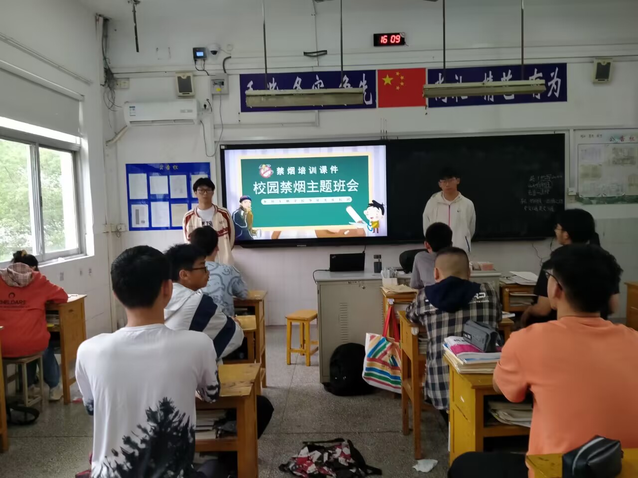 各班开展了形式多样的主题班会活动,介绍了世界无烟日的由来,烟草中的有害成分及吸烟的危害,分析了青少年吸烟的原因,向学生普及健康生活的理念,大力宣传控烟知识,提高学生对吸烟以及二手烟危害的重视程度,号召全体学生一起行动,投入到禁烟活动中去,营造控烟良好氛围。
