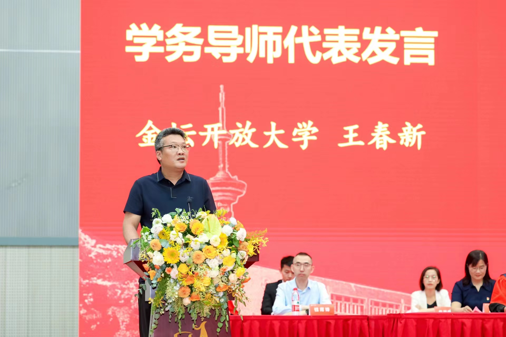 凤凰花正开,不舍骊歌起。6月17日上午,江苏开放大学2023届学生毕业典礼暨学位授予仪式在应天校区隆重举行。汤英俊副校长带领我校获得学位的学员代表到主会场参加毕业典礼,我校王春新老师作为全省学务导师代表在毕业典礼上作精彩发言。