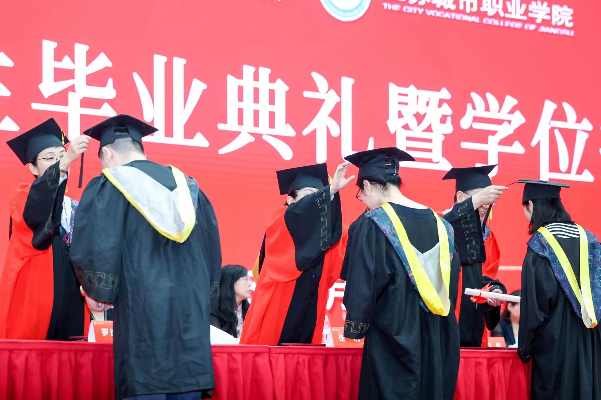 2023年江苏开放大学(江苏城市职业学院)毕业典礼暨学位授予仪式以“主会场+分会场”“线下+线上”的形式在应天校区体艺馆举行,全省办学系统十余万师生或线下相聚,或云端观礼,共同见证15054名开放学生、6190名高职毕业生圆满完成学业。