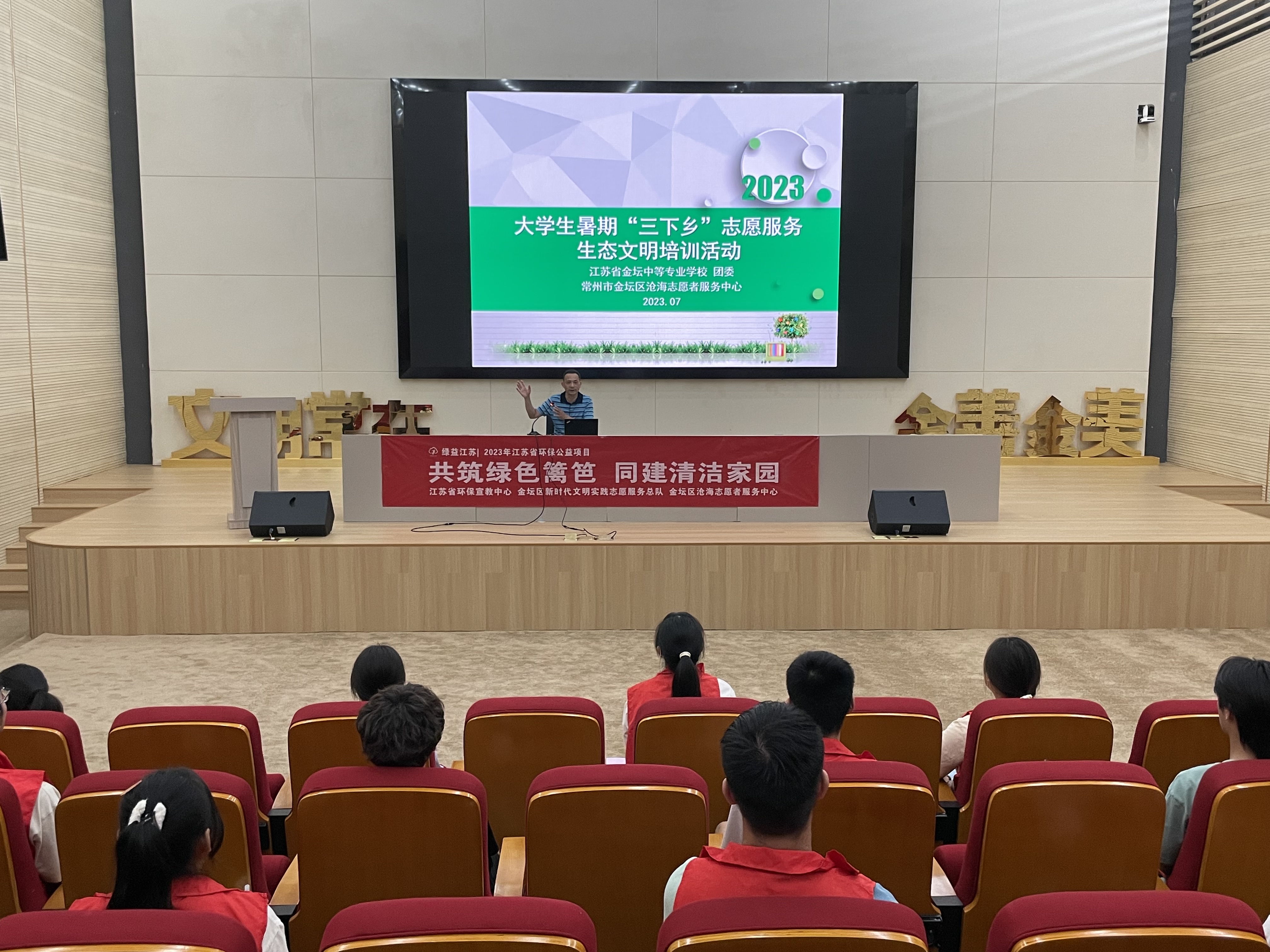 2023年7月12日为“全国低碳日”, 校团委、校沧海志愿者服务社根据活动计划组织学生志愿者赴金坛图书馆和长荡湖沿岸开展“绿益江苏”2023年江苏省环保公益创投项目的既定计划,开展了以 “推动生态文明,建设美丽中国”为主题的志愿者暑期“三下乡”社会实践活动。