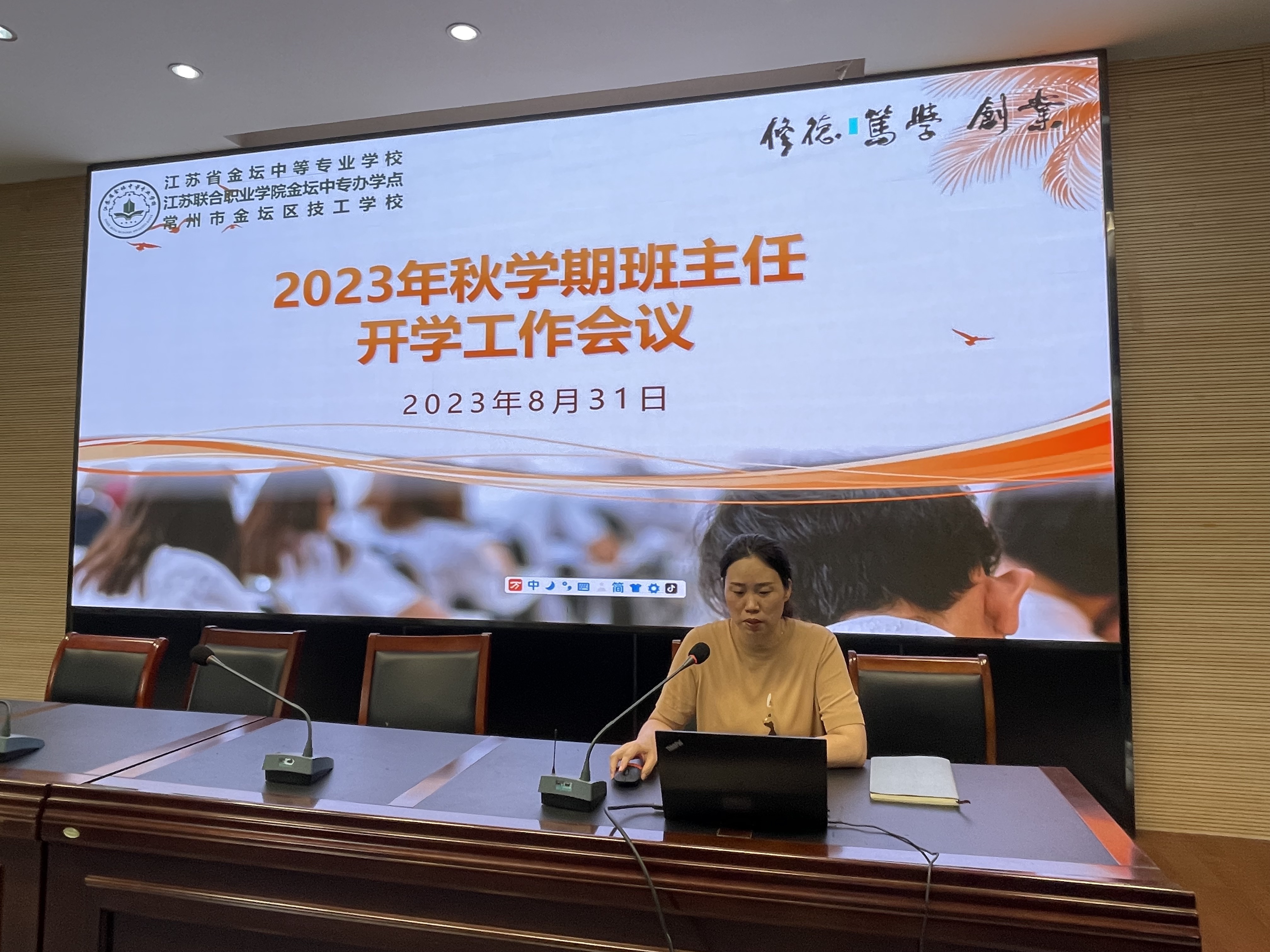 下午,蒋处主持召开了2023年秋学期全体班主任开学会议,首先后勤服务处谌勇副处长、校企合作处陈云东处长、教学科研处陈海霞处长依次上台,分别就校内卫生和食堂就餐问题、考工实习和新生报到问题、教材领取和教学开展问题等进行了讲解和要求。随后,蒋云霞副处长就老生和新生的报到时间流程、开学典礼和后续活动安排、材料的收取与上报等事项进行了逐一的讲解。最后,汤校对各位班主任的认真辛苦的工作表示了感谢,并对接下来的学生报到和后续班级管理工作提出了要求。汤校指出,学生工作不能有侥幸心理,要抓严抓实各项工作要求,同时也要善于发现与学生相处过程中的一个个闪光点,希望各位大家都能圆满完成本学期的班主任工作。