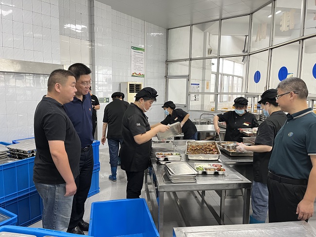 在学校食堂,检查小组向工作人员详细了解餐饮卫生管理、食品价格保障、供餐配套服务等情况,重点对食材验收存放、菜品质量保证、燃气使用安全等重点事项进行了检查,确保假期留校学生的餐食卫生安全。