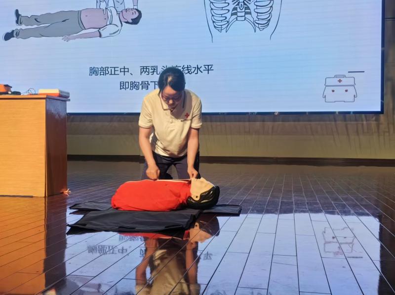 上午时分,操场上少了往日的喧嚣,大礼堂内多了一份专注与宁静。随着教官的一声令下,全体新生整齐划一地坐在了指定区域,一场别开生面的急救知识讲座正式开启。区红十字会的专家担任主讲,她以生动的案例为切入点,深入浅出地讲解了心肺复苏术、止血包扎、扭伤等常见意外伤害的急救处理方法。专家的讲解既专业又接地气,不时穿插的互动问答环节更是激发了同学们的学习热情,现场气氛热烈而活跃。