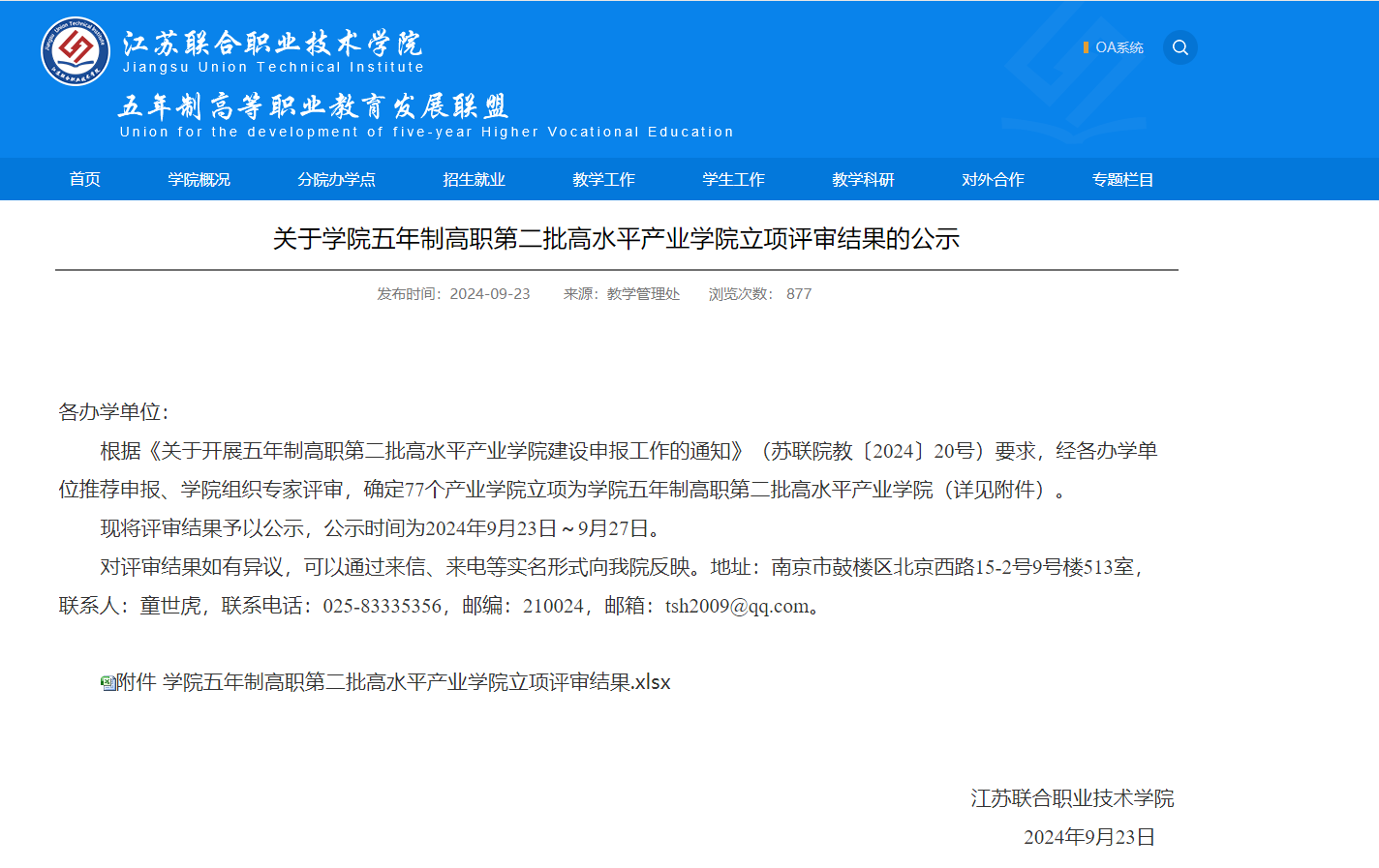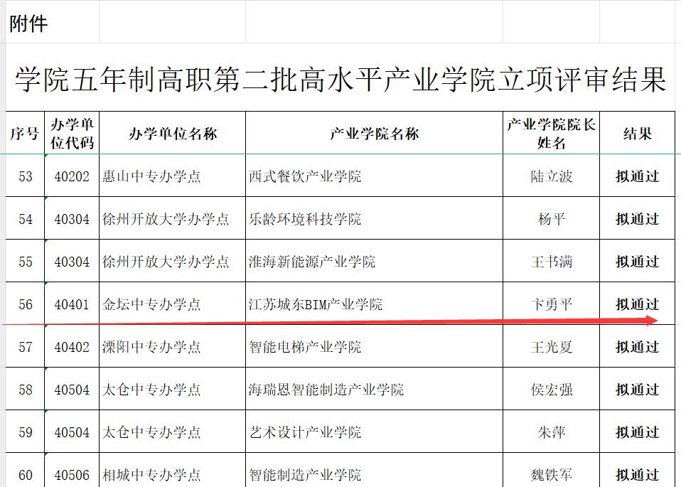近日,江苏联合职业技术学院公布了《关于学院五年制高职第二批高水平产业学院立项评审结果的公示》,经各办学单位推荐申报、学院组织专家评审,我校江苏城东BIM产业学院通过学院五年制高职第二批高水平产业学院立项。