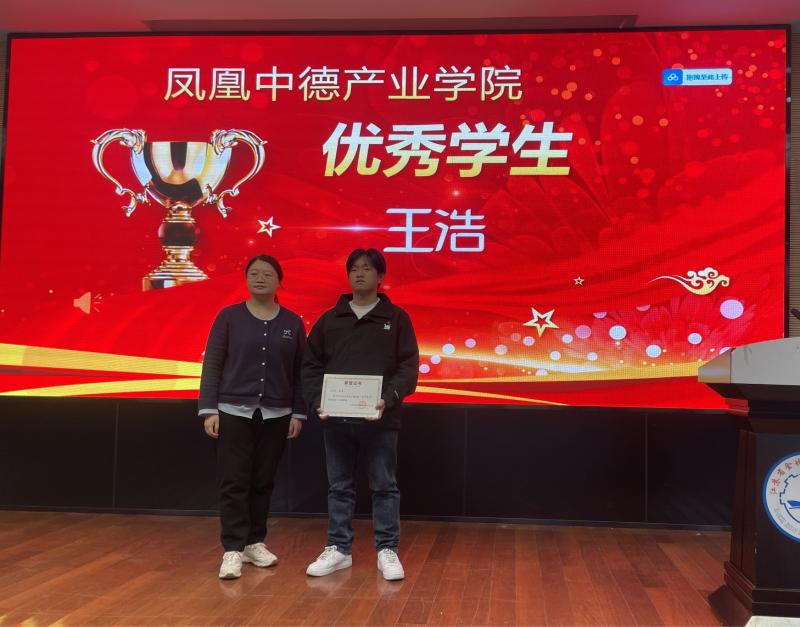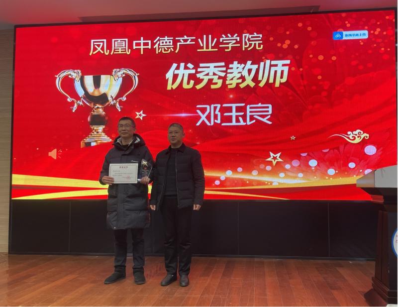 在热烈的掌声中,校企双方领导为获奖师生颁发荣誉。本次共表彰优秀学生18名,其中一等奖3人、二等奖6人、三等奖9人。特别设立的"凤凰中德项目优秀教师"和"优秀学生"奖杯,则彰显了校企协同育人的丰硕成果。